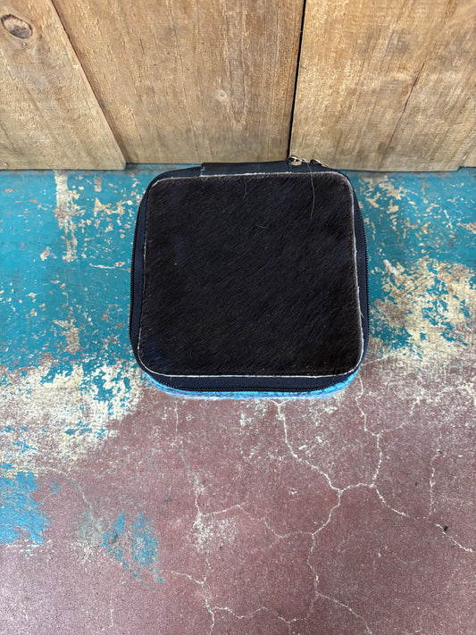 Small Square Black And White Cowhide Blue Knitted Jewelry Box