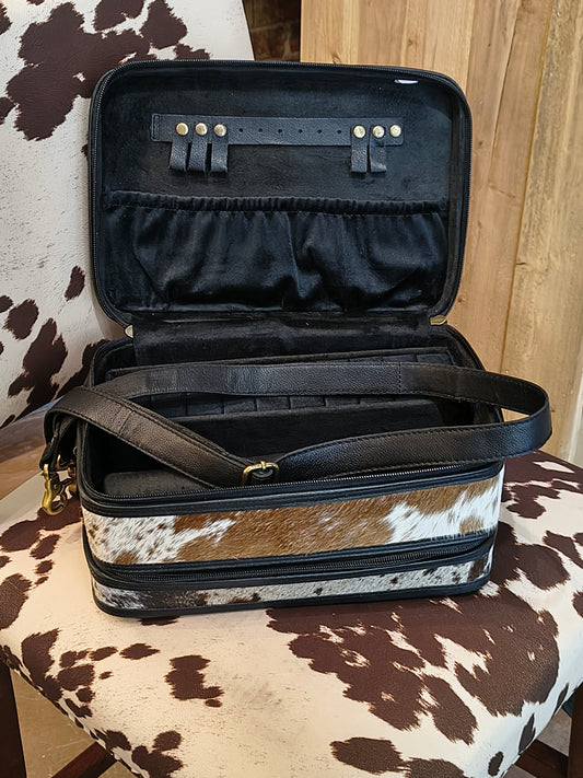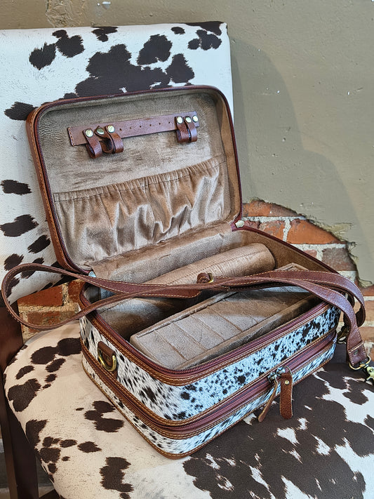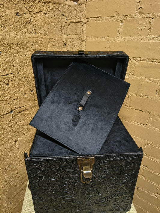 Leather Tooled with Cowhide 2 Layer Jewelry Box