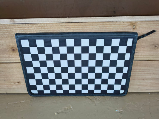 Leather Black and White Checkered Necklace Flat Jewelry Holder