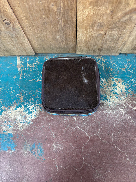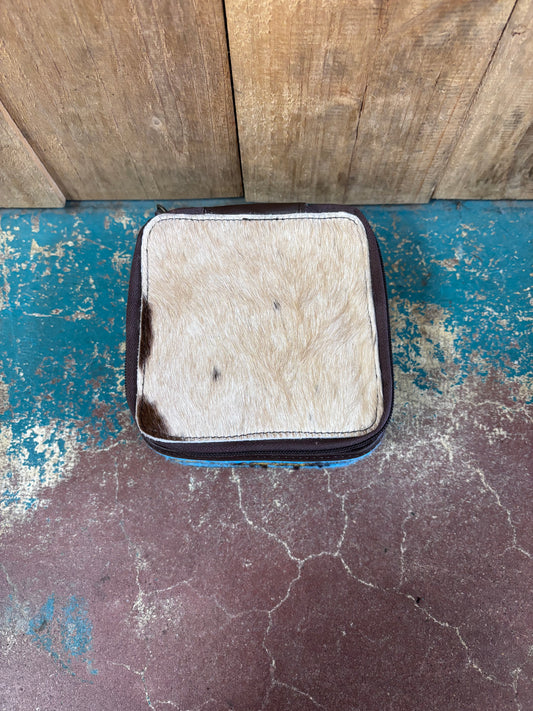 Small Square Tan Cowhide Blue Knitted Jewelry Box