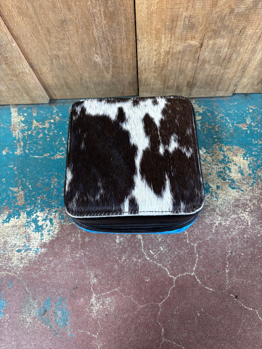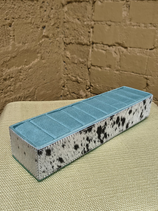 Small Square Black And White Cowhide Blue Knitted Jewelry Box