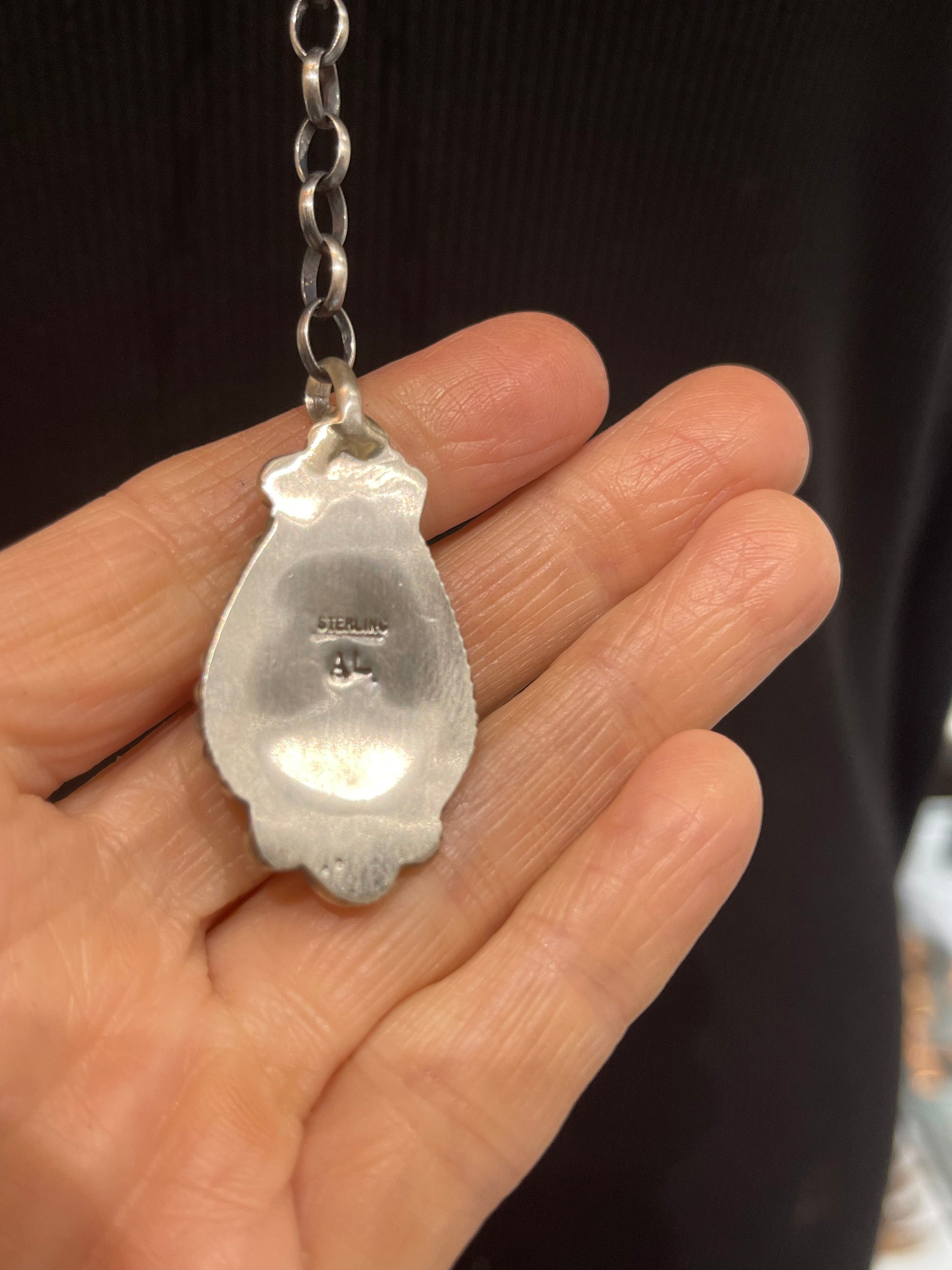 This striking lariat-style necklace showcases the vibrant deep red of genuine spiny oyster shell, expertly crafted by renowned Navajo artisan Augustine Largo. The 20" + 9" design offers versatile styling—wear it long and flowing for an effortless bohemian look, or wrap it for layered dimension. Each piece celebrates traditional Navajo craftsmanship with authentic materials and meticulous detail. Perfect for collectors and those seeking a statement piece that honors Native American artistry and heritage.