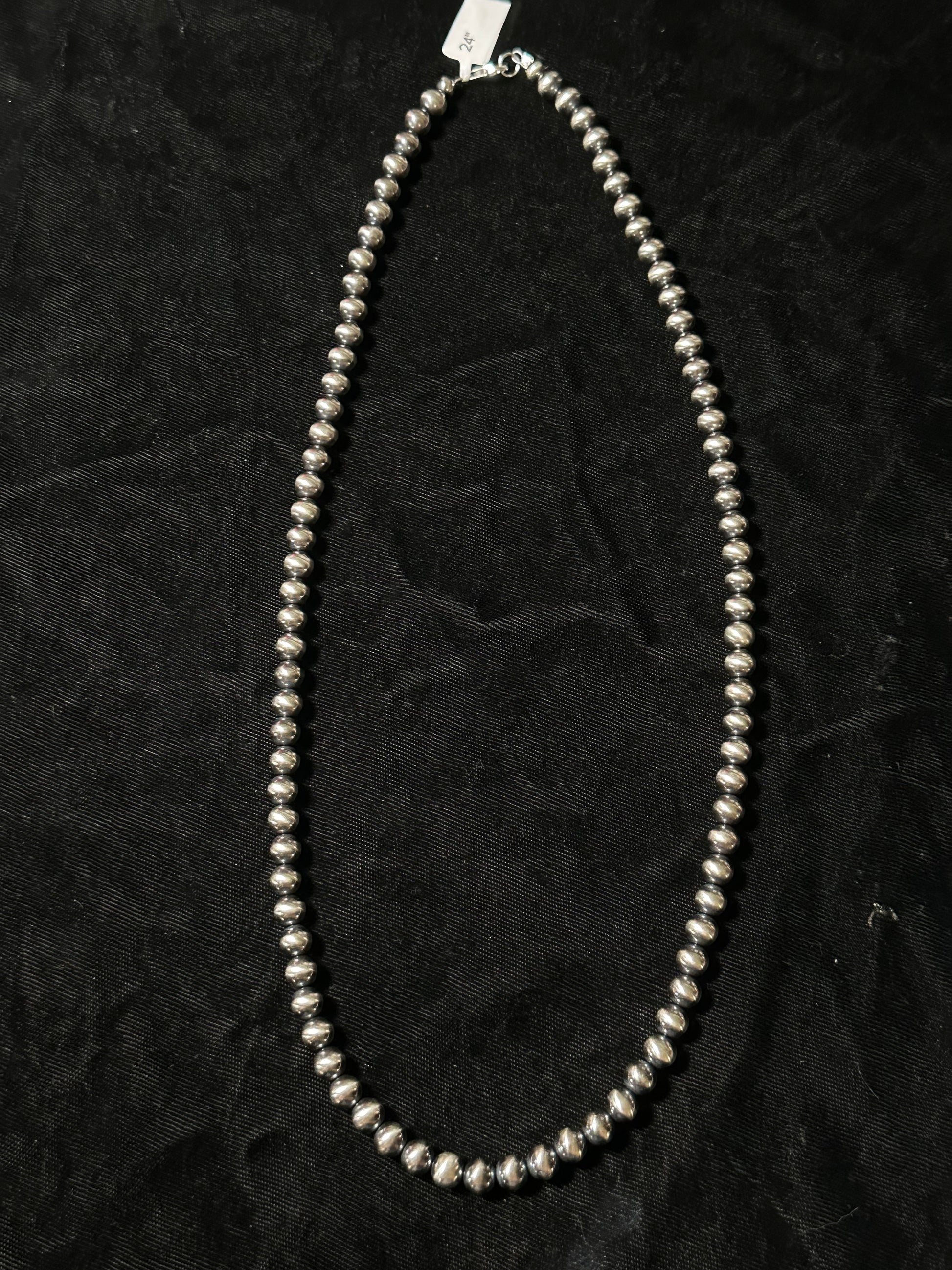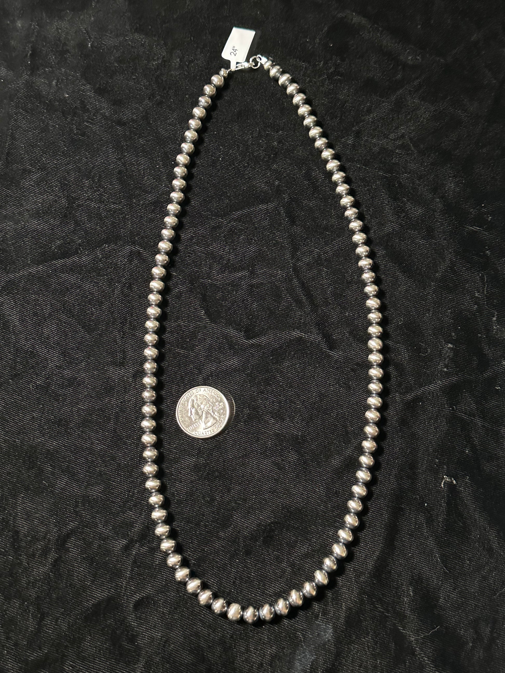 Experience the timeless beauty of our 24" 7mm Navajo Pearls. Crafted with precision and care, these stunning navajo pearls add a touch of elegance and culture to any outfit. Make a statement and stand out from the crowd with these unique and versatile accessories.