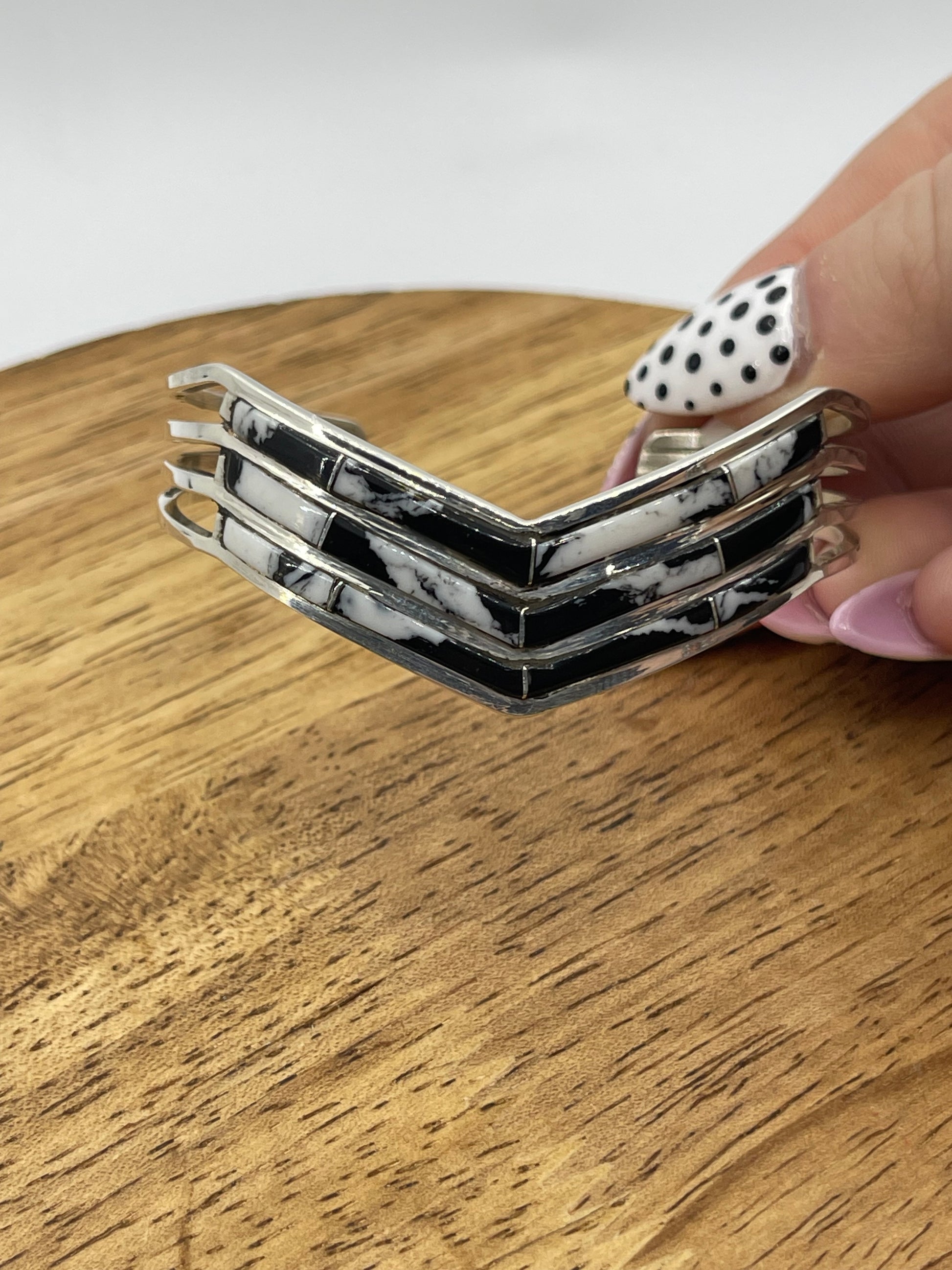 3 Row White Buffalo Chevron Cuff by Jamie Johnson, Navajo