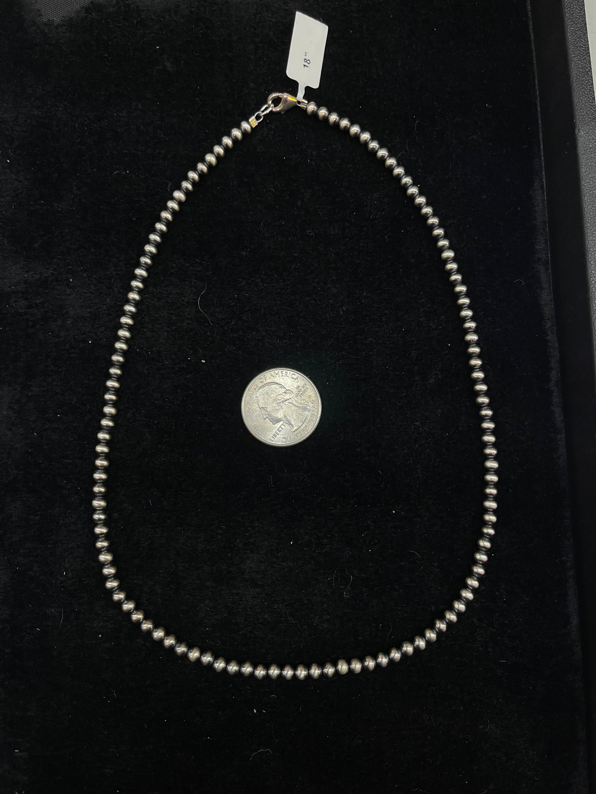 Add a touch of traditional elegance with our 4mm 18” Navajo Pearls. Made with care and precision, these pearls are the perfect size for any outfit. Let their timeless beauty elevate your style and make a statement. Perfect for any occasion, these pearls are a must-have in any jewelry collection.