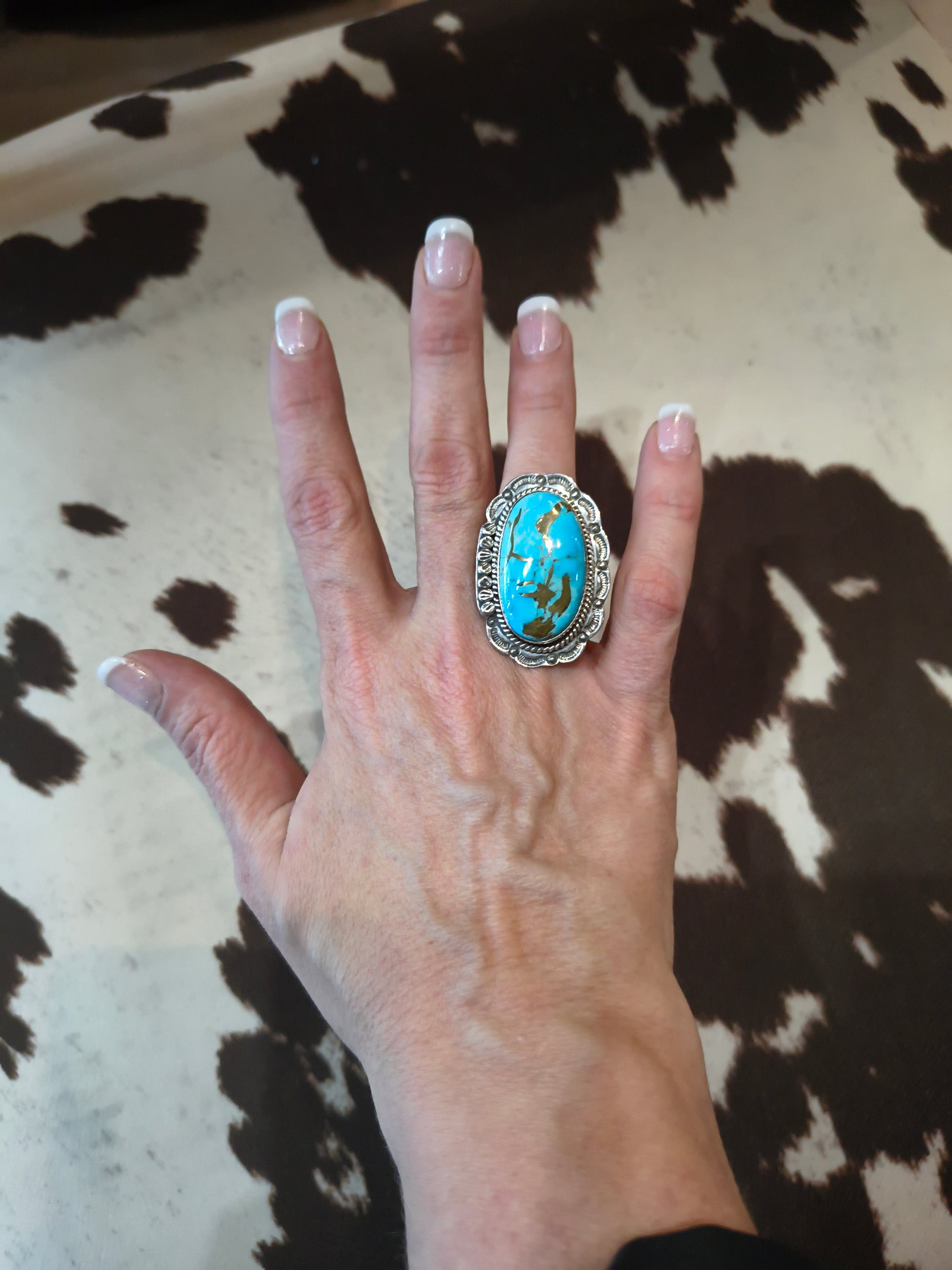 7 Kingman Turquoise Ring by Gilbert Platero, Navajo