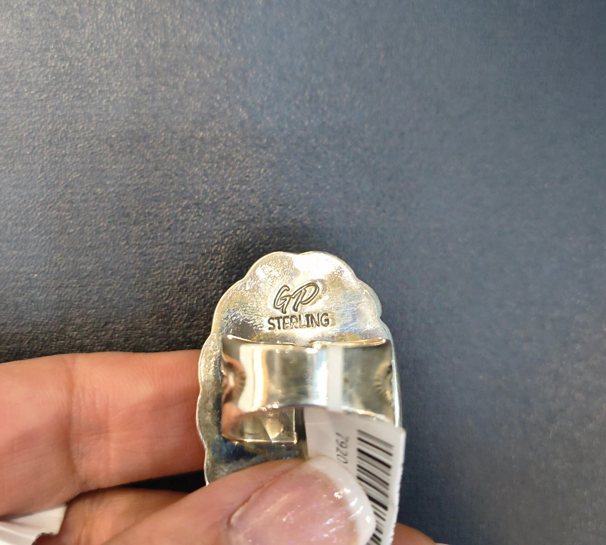 This exquisite ring features a stunning oval Kingman turquoise stone set in a sterling silver band. Handcrafted by Navajo artisan, Gilbert Platero, this ring is a size 7.5 and showcases the finest craftsmanship. Elevate your style with this unique and authentic piece.
