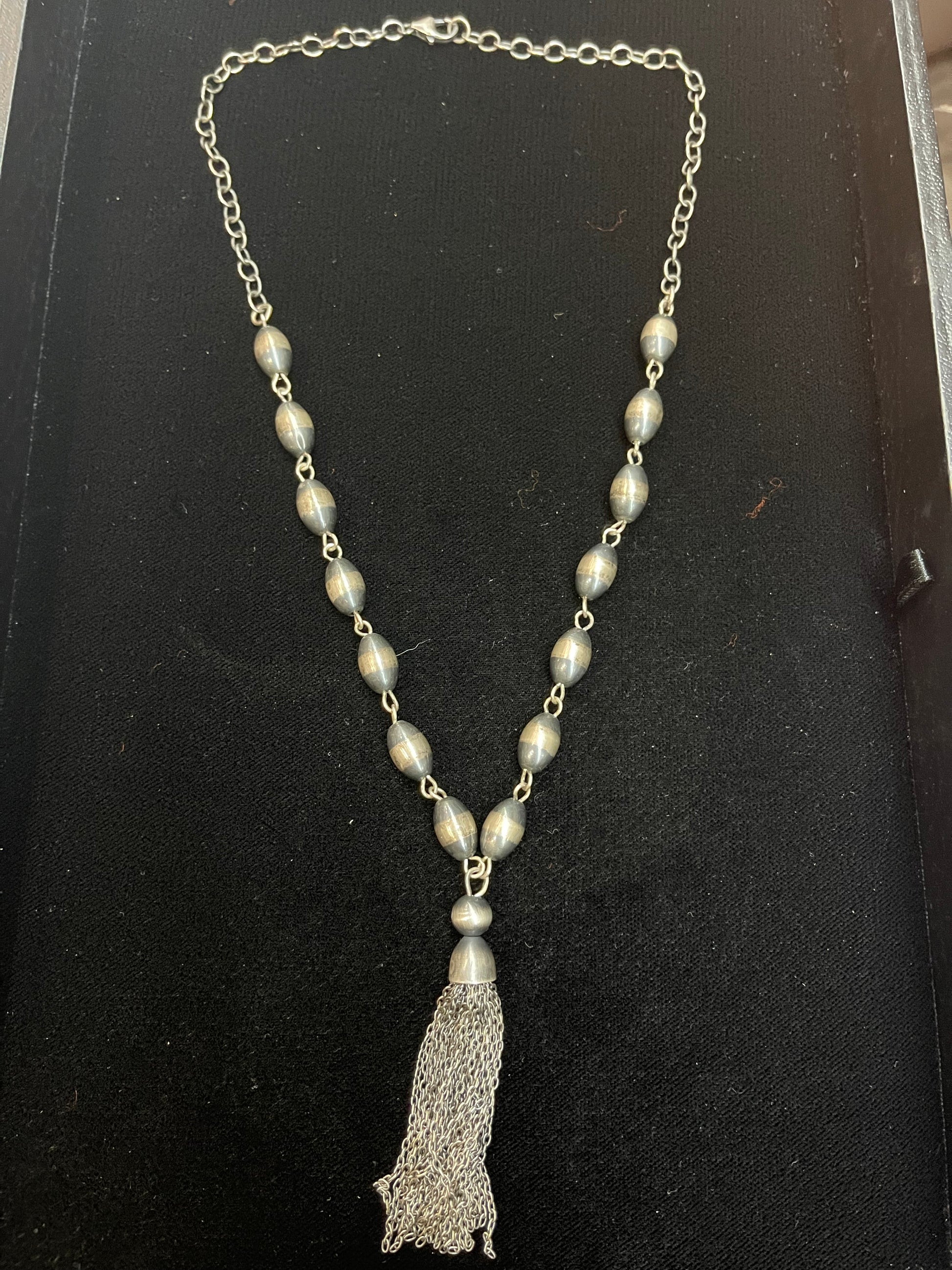 8mm Navajo Pearl and Chain Necklace with Tassel (20” + 3” tassel)