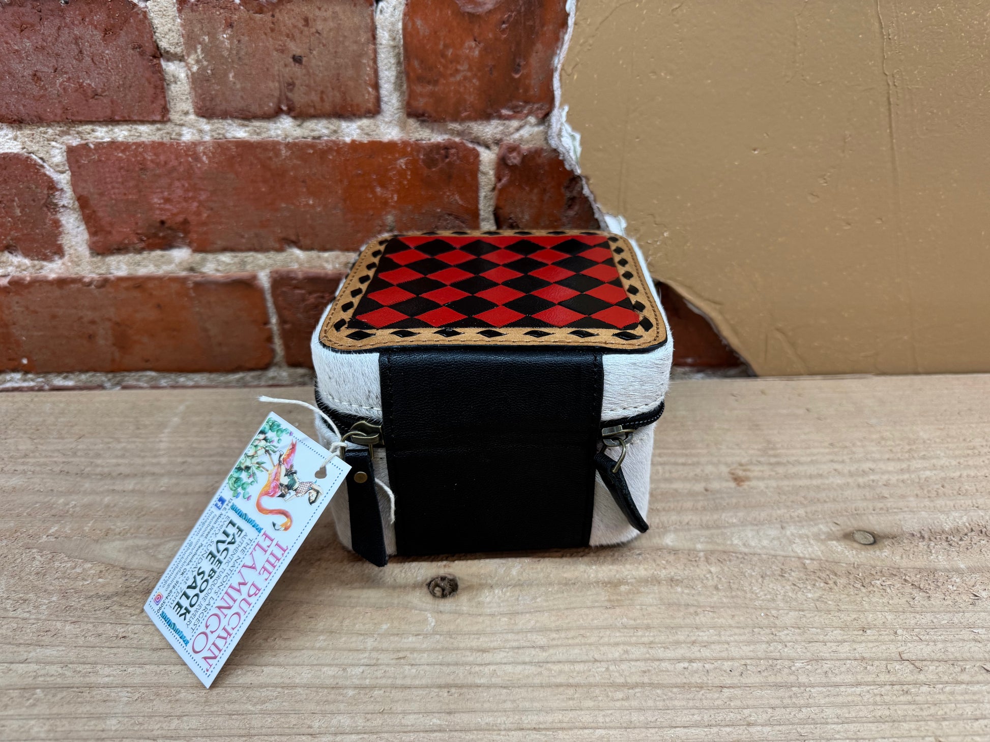 Black and Red Checkered Painted Leather and Cowhide Small Square Jewelry Box