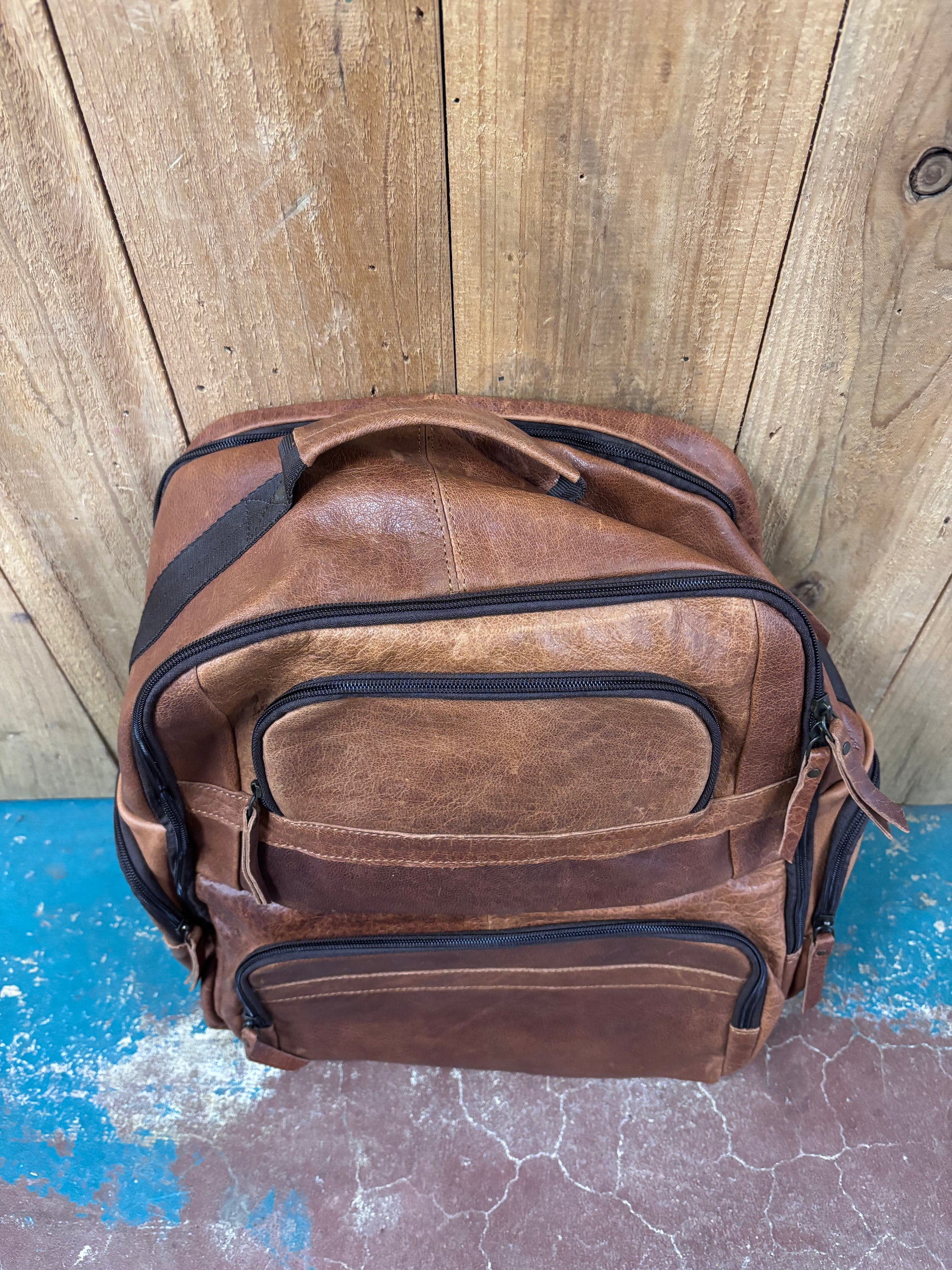 This spacious brown leather backpack combines rugged durability with thoughtful organization. Standing 19 inches tall and 26 inches wide, it offers ample capacity for daily essentials and travel gear. Premium leather construction ensures lasting quality, while eight strategically placed exterior pockets keep frequently used items within reach. Interior compartments feature dedicated storage—two back pockets in the first section, two front pockets plus a secure zipping pocket in the second—so everything stays organized and protected. Whether you're commuting, traveling, or exploring, this versatile pack adapts to your lifestyle with style and functionality.