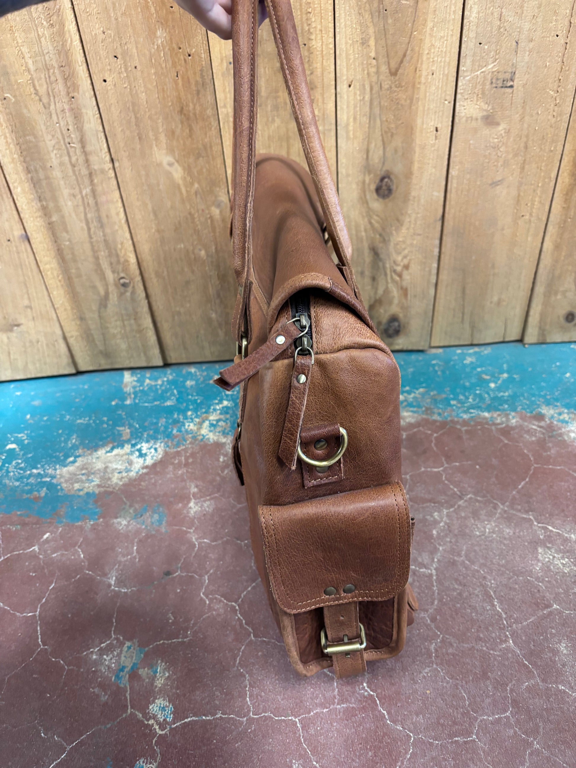 This sophisticated brown leather briefcase combines timeless style with practical functionality. Standing 16 inches tall and 20 inches wide, it offers ample space for documents, laptops, and daily essentials. The premium leather construction features six exterior pockets—two on the back, two on the side, and two on the front—plus a protective leather flap that elegantly conceals the main zipper. Inside, four dedicated pockets keep your valuables organized and secure. Complete with a matching leather bag strap, this versatile briefcase transitions seamlessly from the boardroom to business travel, making it an investment piece that elevates your professional presence.