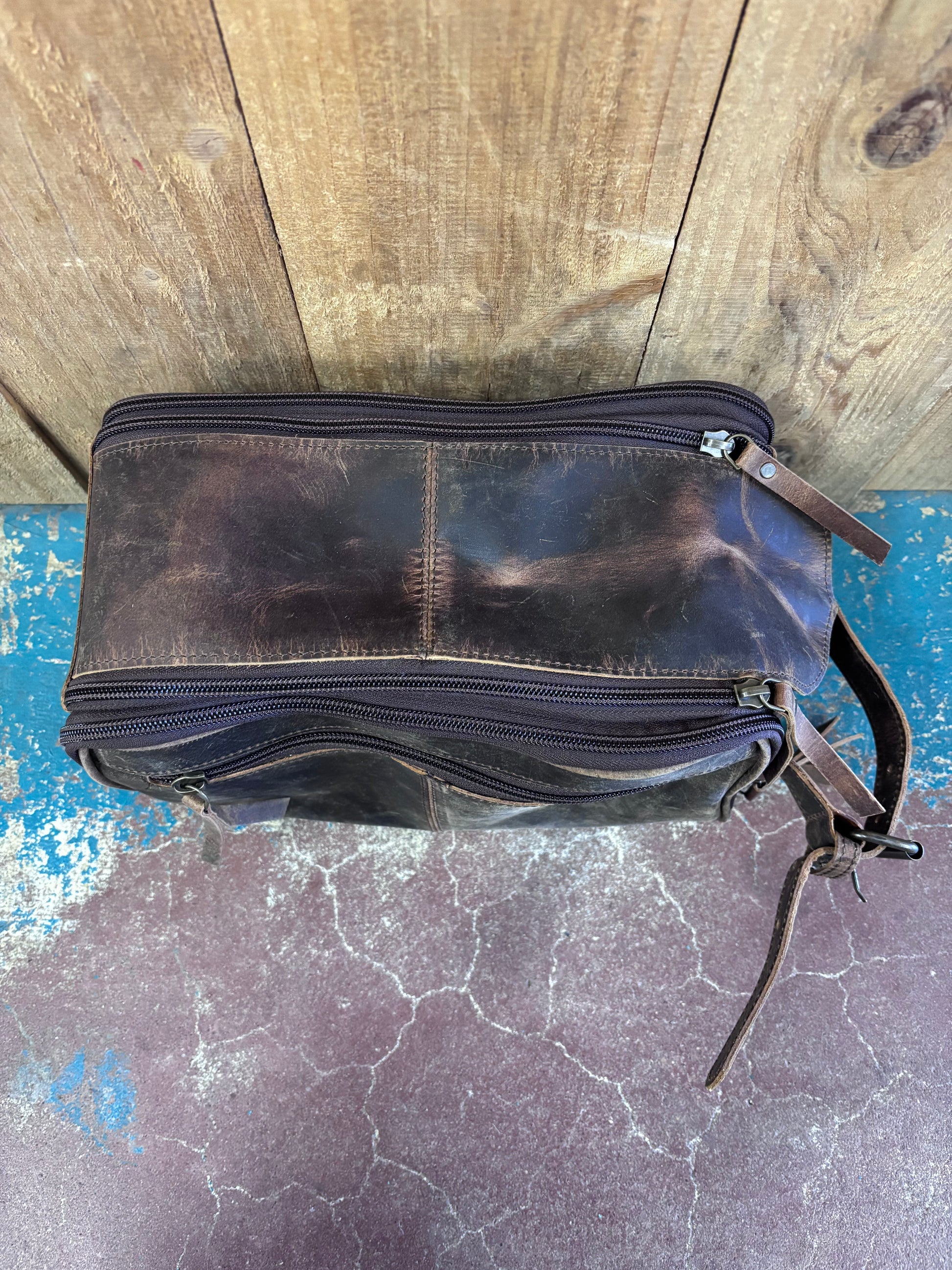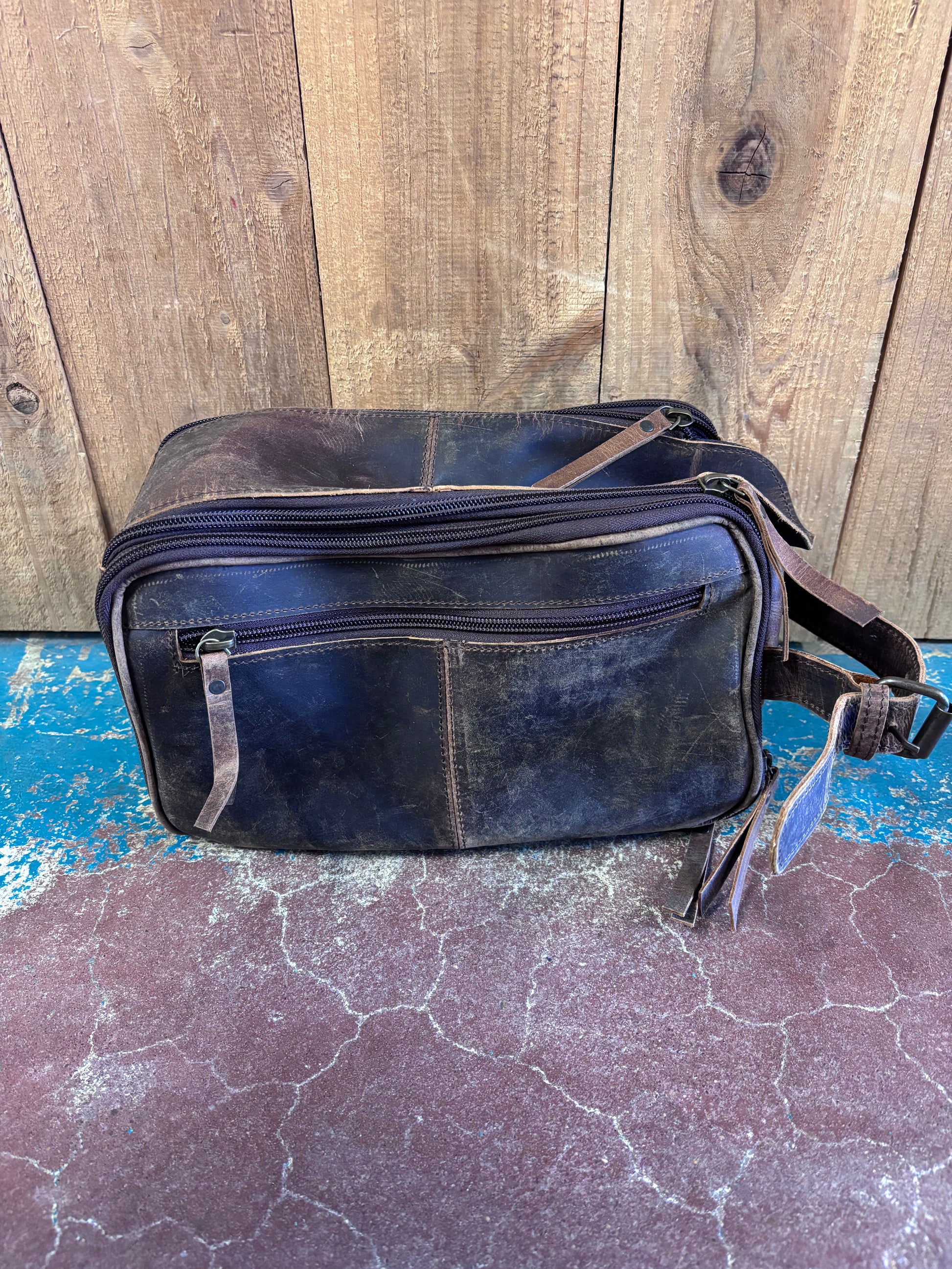 This brown leather shaving kit combines rugged style with practical organization. Standing 6 inches tall and 11 inches wide, it features five zippered pockets for secure storage of razors, brushes, and grooming essentials. The convenient side handle makes it easy to carry between locations, while the center pocket's dual-zipper design with button closure keeps your most-used items instantly accessible and protected. Crafted from durable leather, it's built to age beautifully and withstand daily use—the perfect companion for travelers, professionals, or anyone who values quality grooming gear.