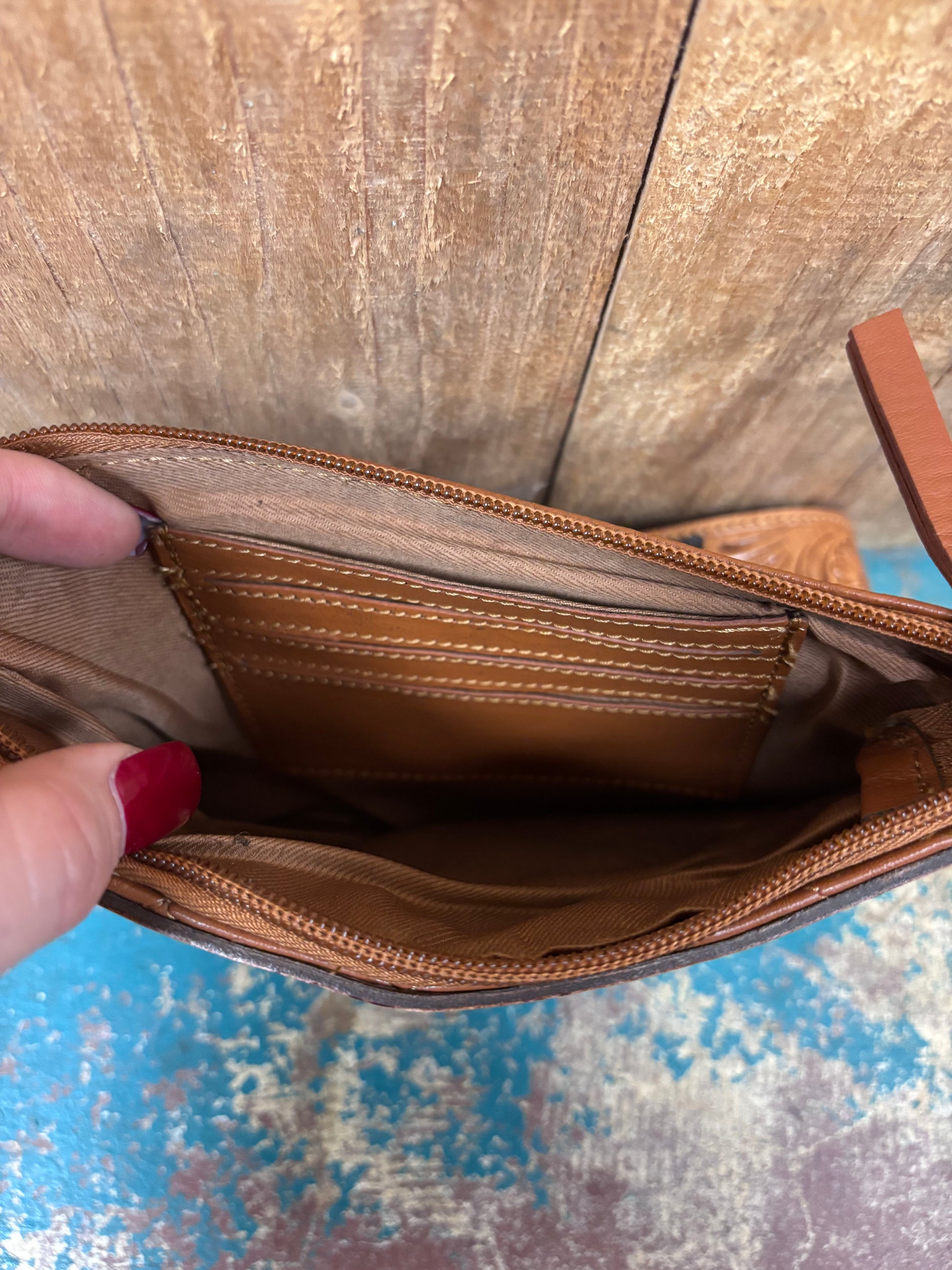 Brown Quilted And Tooled Leather Wallet/Crossbody Purse