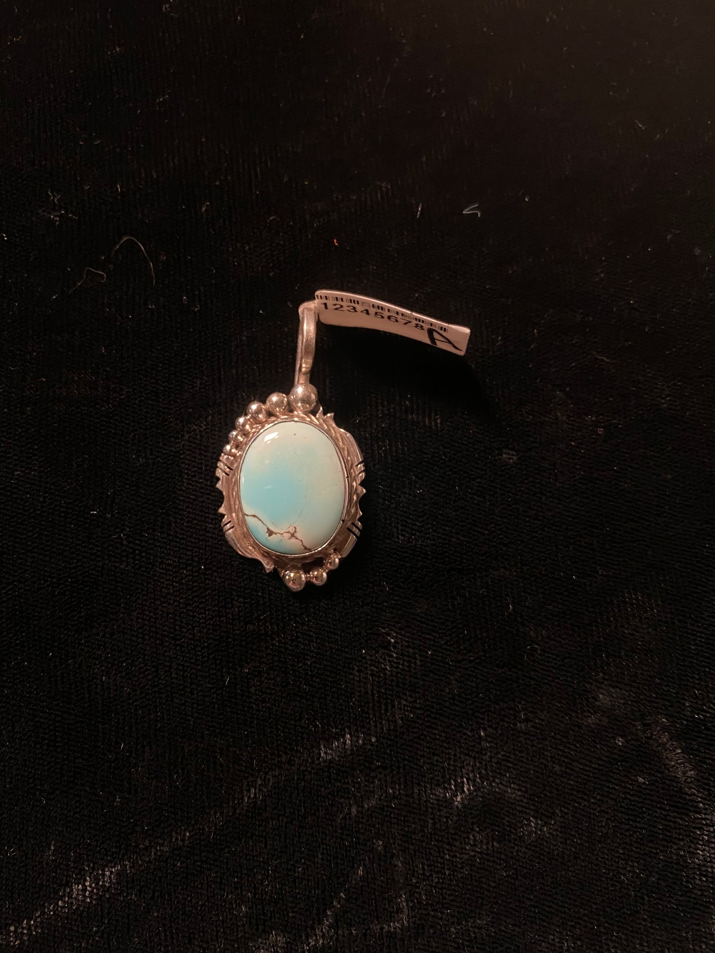 Super cute, dainty golden hills turquoise pendant with shepherd hook stamped "DEU".