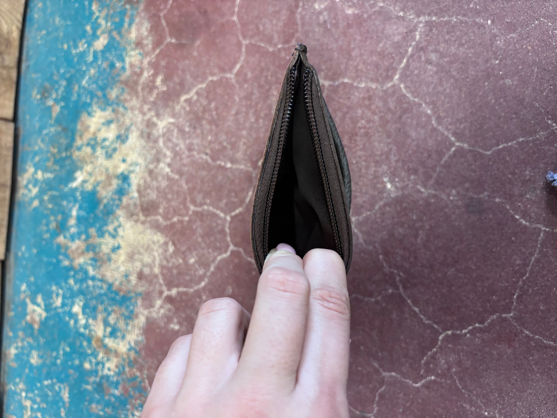 This beautifully crafted leather wallet features hand-tooled floral detailing on the front that makes a statement. Measuring 4 inches tall by 6 inches wide, it's the perfect size to slip into any pocket or bag. The top zip pocket keeps coins secure and organized, while dedicated slots hold bills and four cards—everything you need in one elegant piece. Quality leather construction ensures durability that lasts, making this wallet a smart investment in both style and function.