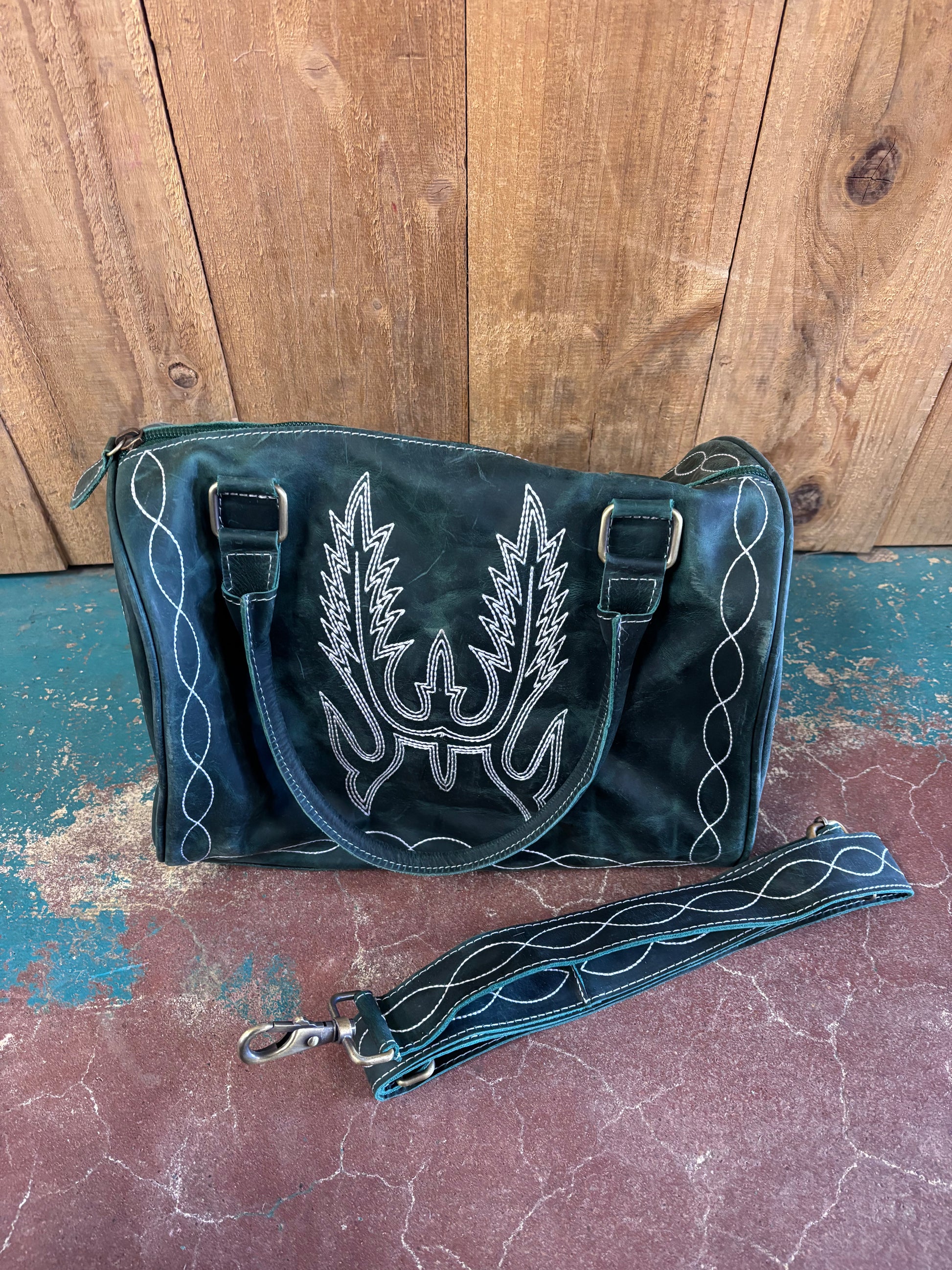 Boot Top Stitch Green Leather Boot Stitched Overnight Speedy Bag Purse (Version 2)