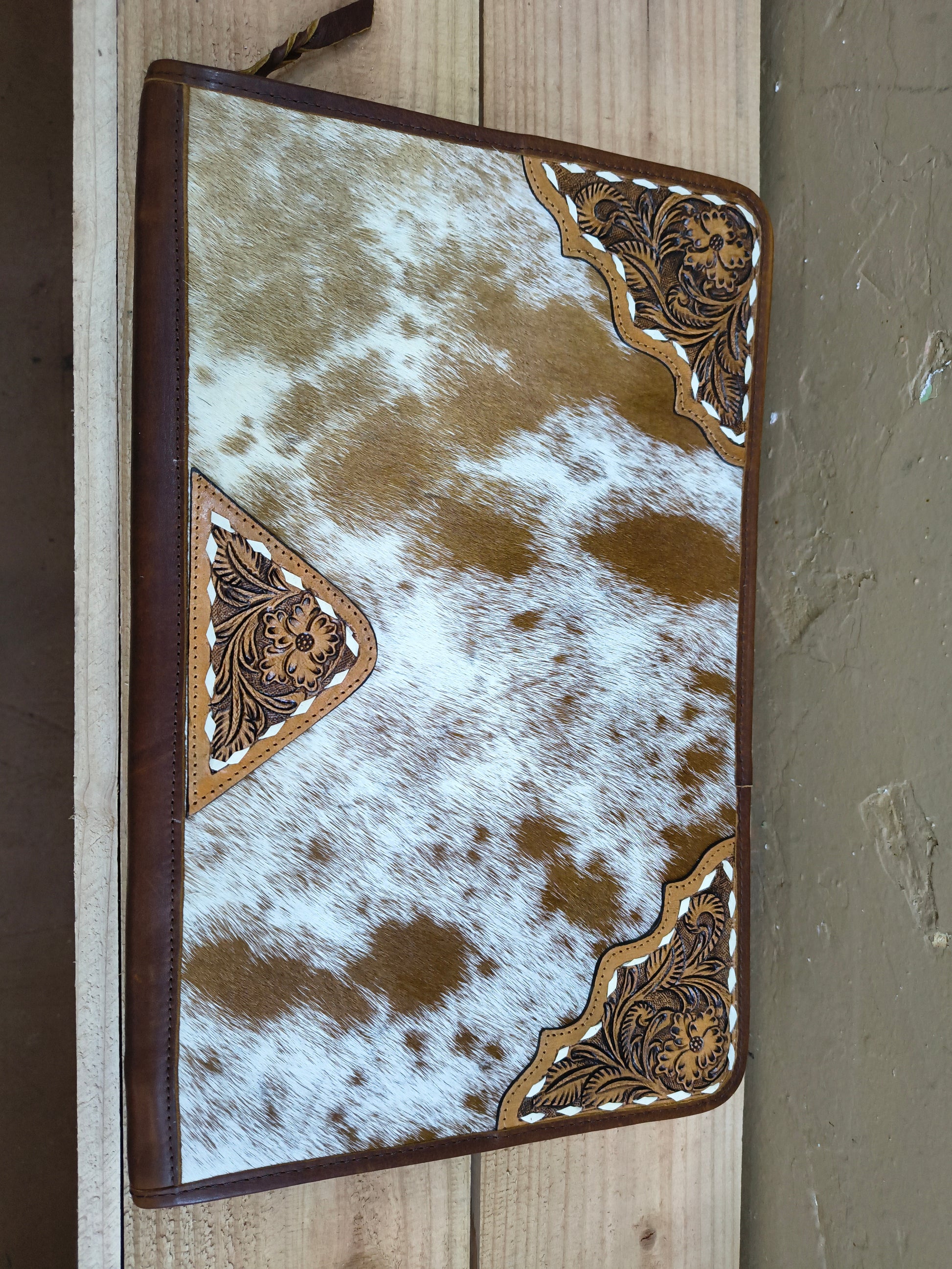Tooled Leather and Cowhide Necklace Flat Jewelry Holder