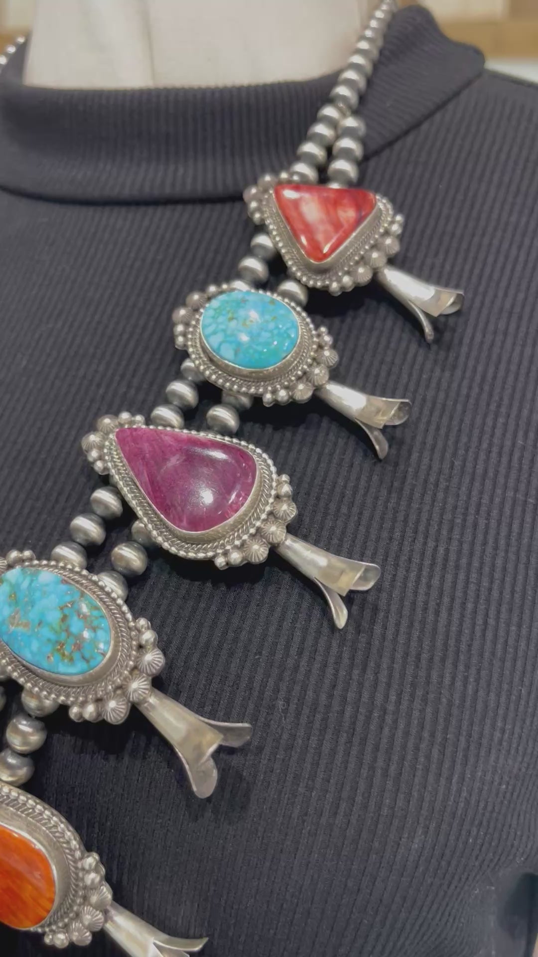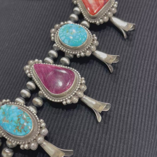 28" Multi Stone Squash Blossom Necklace by Tom Lewis, Navajo