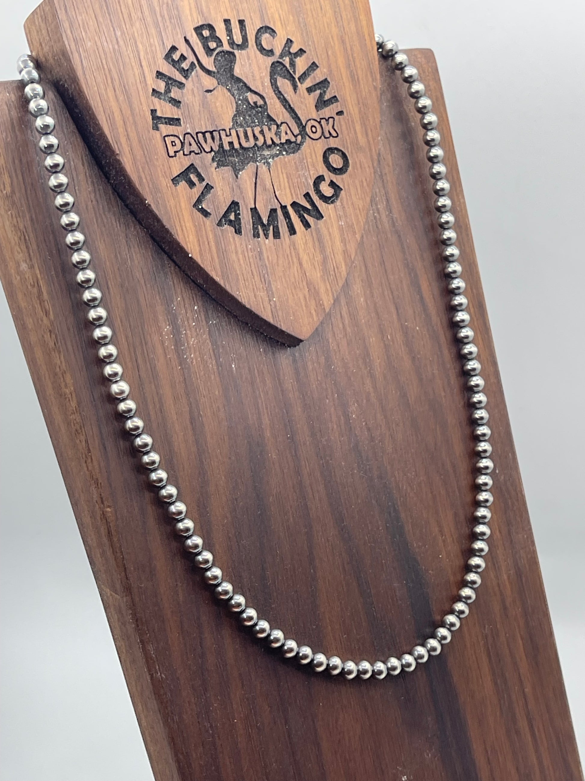 Enhance your jewelry collection with this stunning 21" strand of 5mm Navajo Pearls. Known for their polished look and genuine craftsmanship, these pearls add timeless elegance to any outfit. Whether layered or worn alone, they deliver a classic Southwestern charm that’s perfect for everyday wear or special occasions. Durable and beautifully crafted, this necklace promises lasting appeal and a touch of distinctive style.