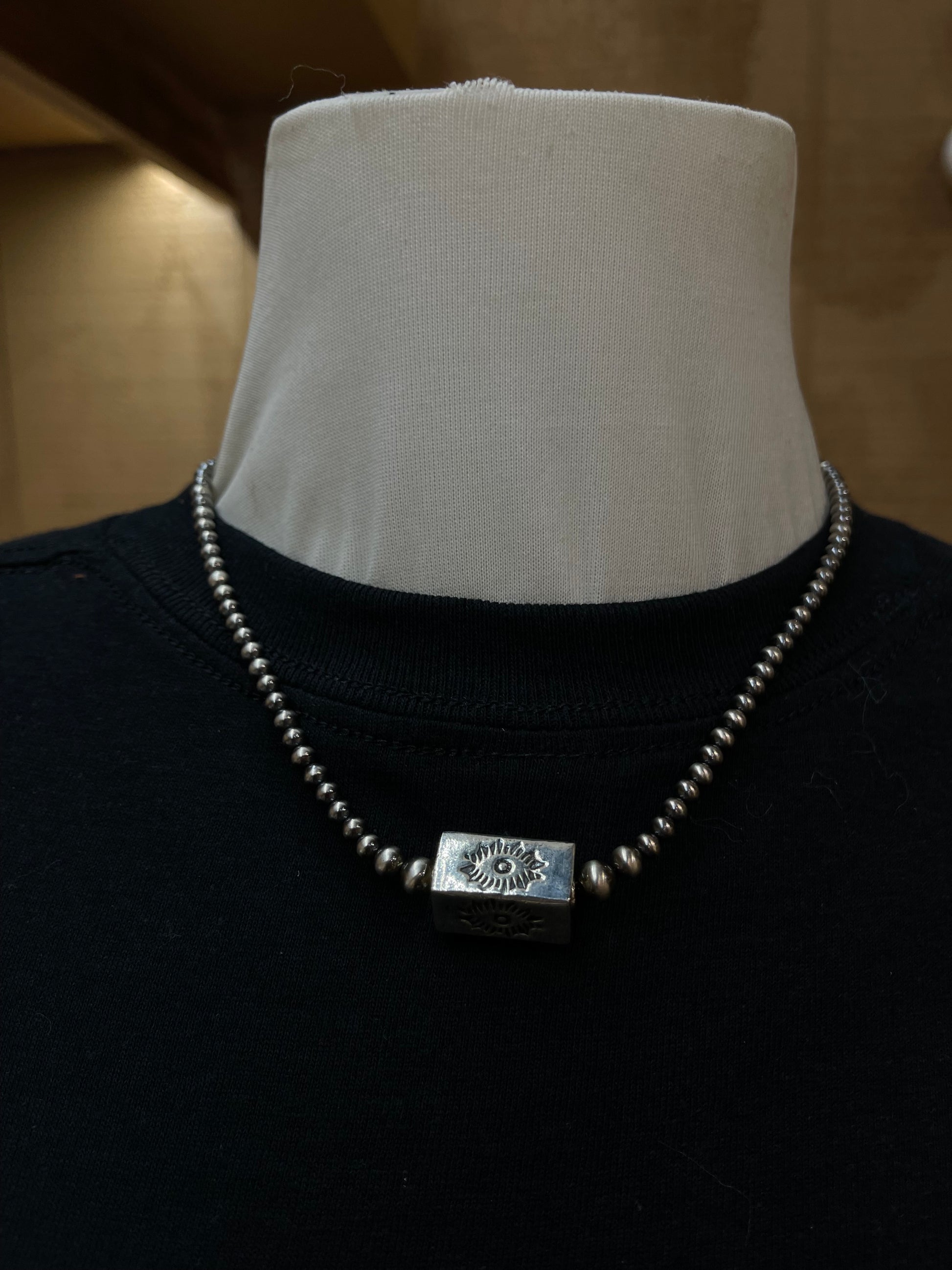 16" 4mm Navajo Pearls necklace with a 12mm Silver Box