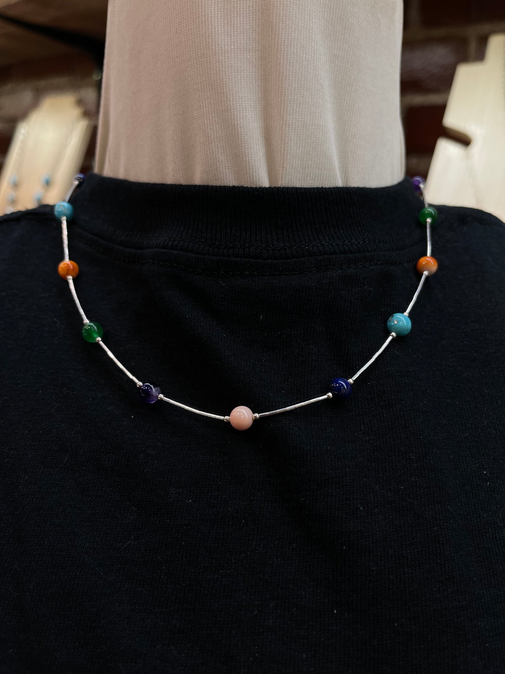 18" Multi Stone Rainbow Necklace and Liquid Silver
