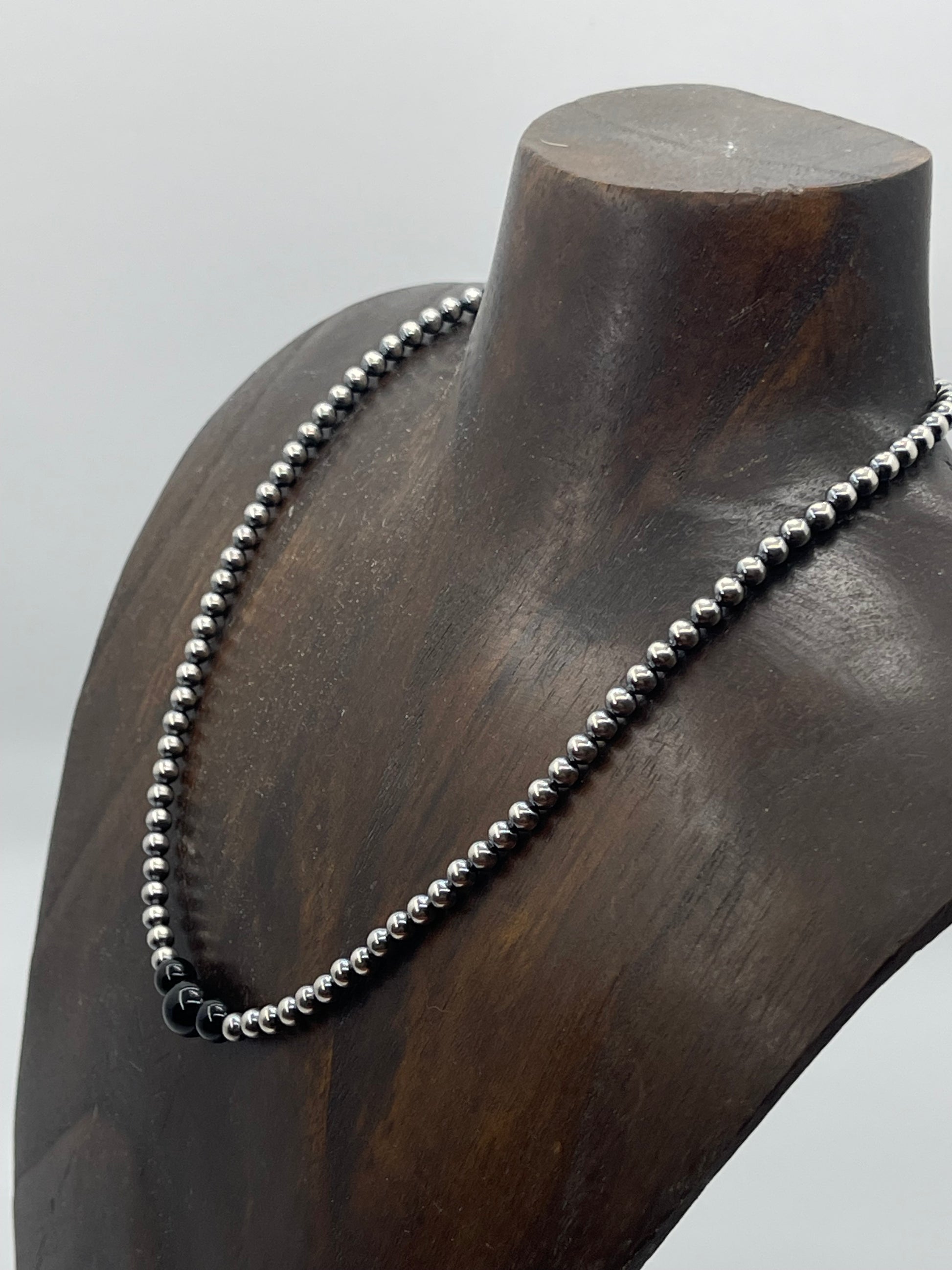 16" 4mm Navajo Pearls and Black Onyx Necklace