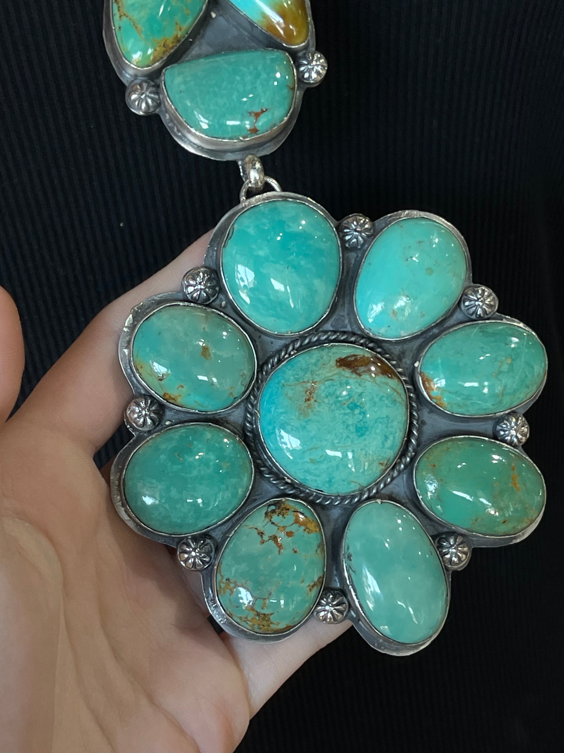 25" Emerald Valley Turquoise Cluster Lariat Necklace by Boyd Ashley, Navajo