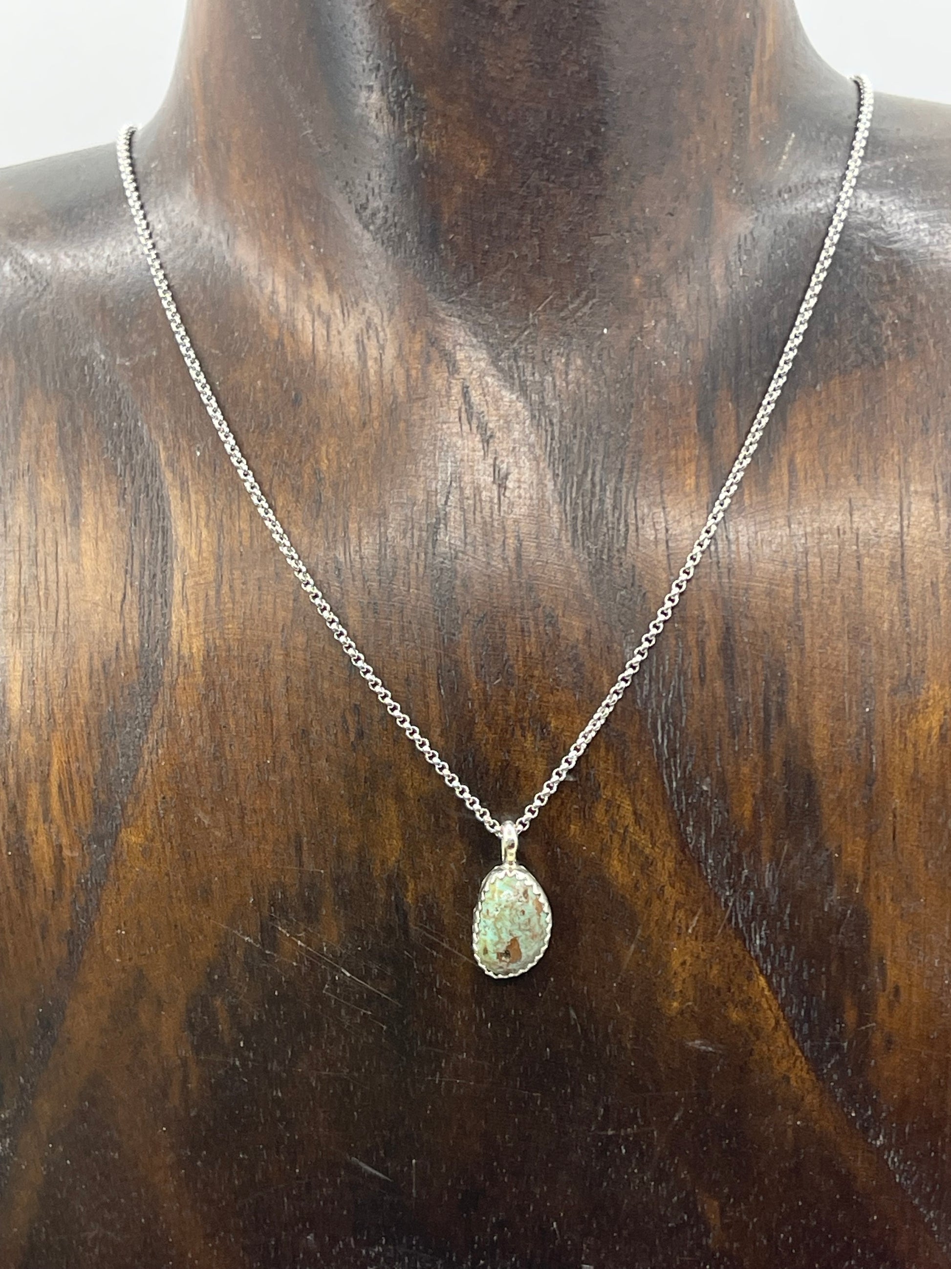 18" Small Natural Turquoise Stone Necklace by Dorothy Yazzie, Navajo