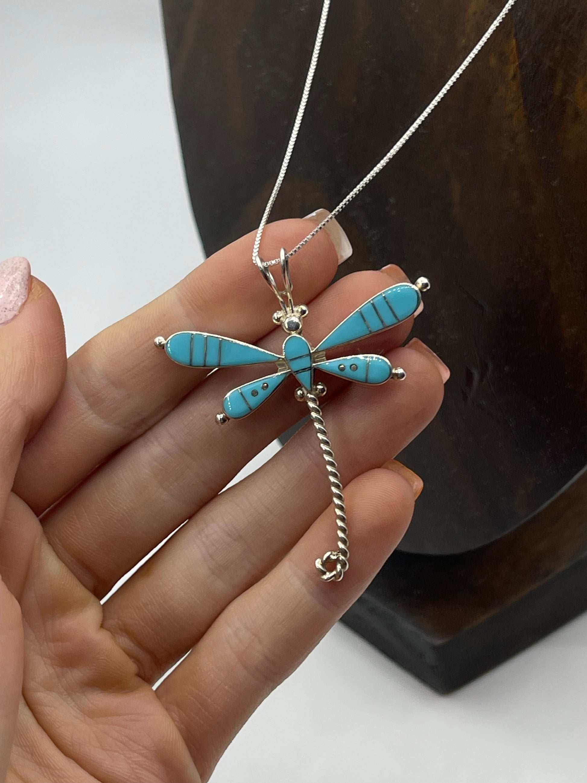 18" Inlay Turquoise Dragonfly Pendant Necklace