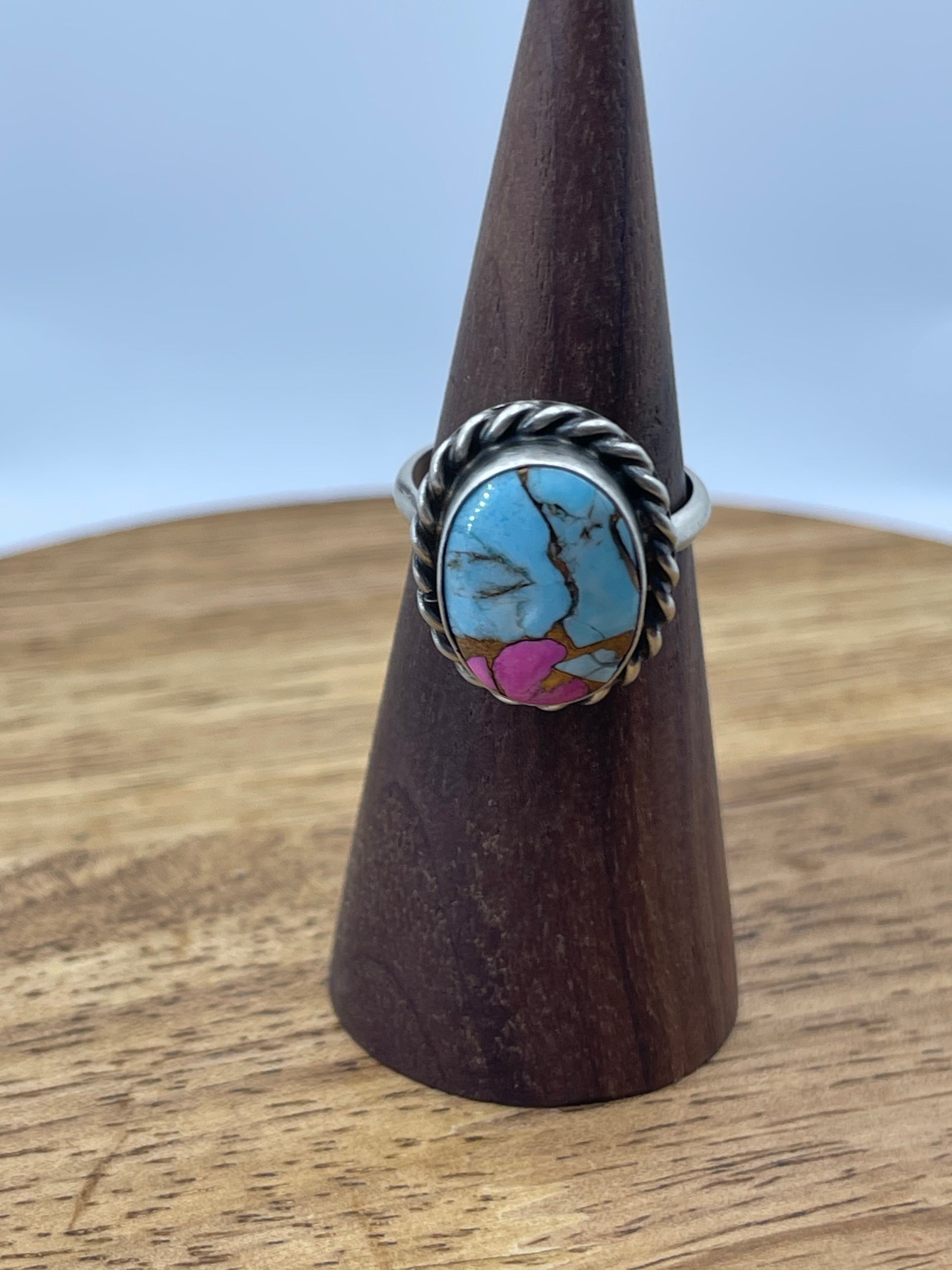 Experience the unique charm of the Adjustable Cotton Candy Ring by Augustine Largo, a masterful Navajo artisan. Crafted with care, this ring offers a versatile fit to complement any style. Its distinctive design evokes the playful sweetness of cotton candy, making it a standout accessory that brings color and creativity to your jewelry collection. Perfect for those who appreciate handcrafted artistry and flexible comfort in one stunning piece.