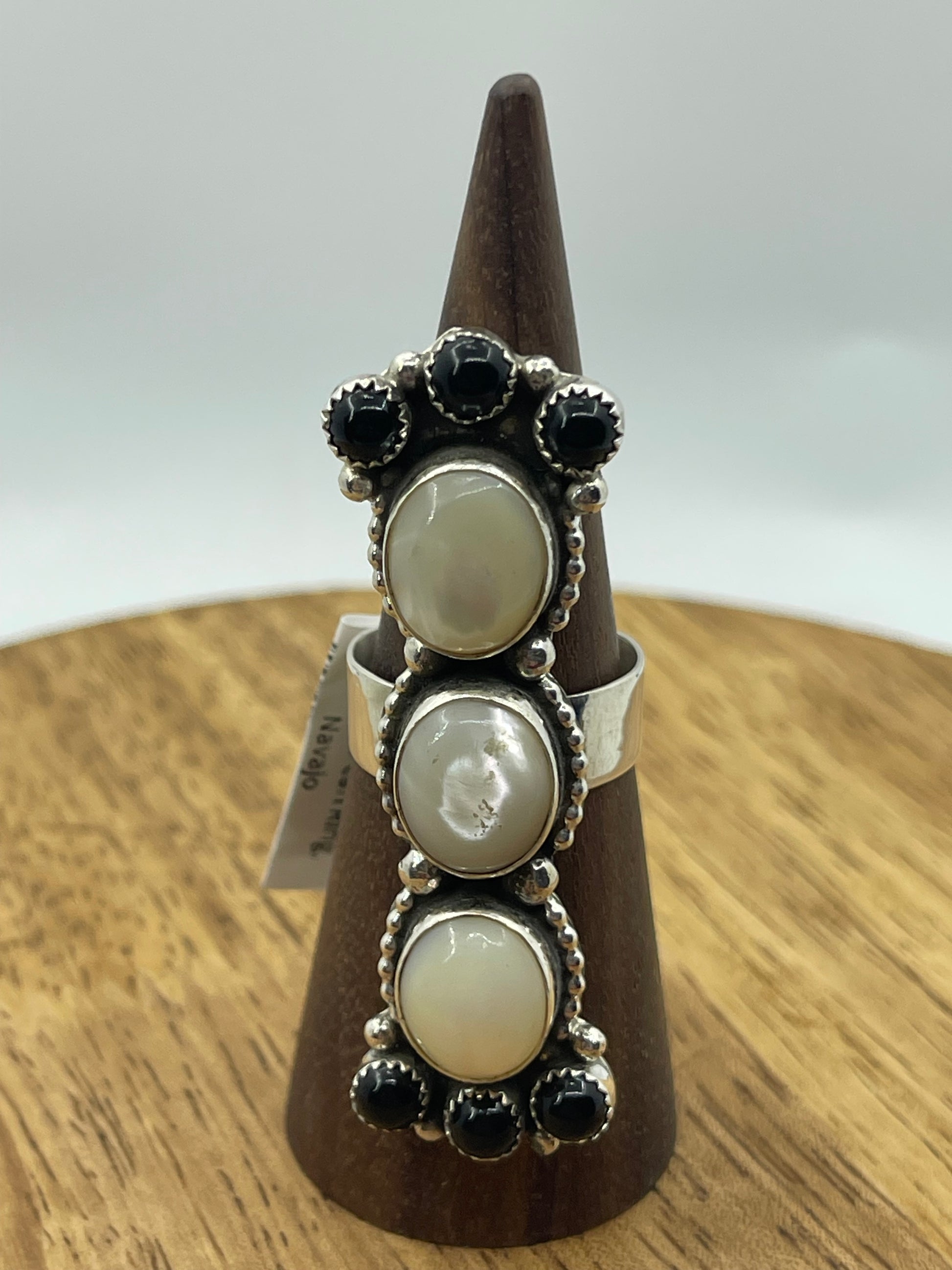 LOT 23 A 1/4 9.5 Black Onyx and Mother of Pearl Ring, Navajo