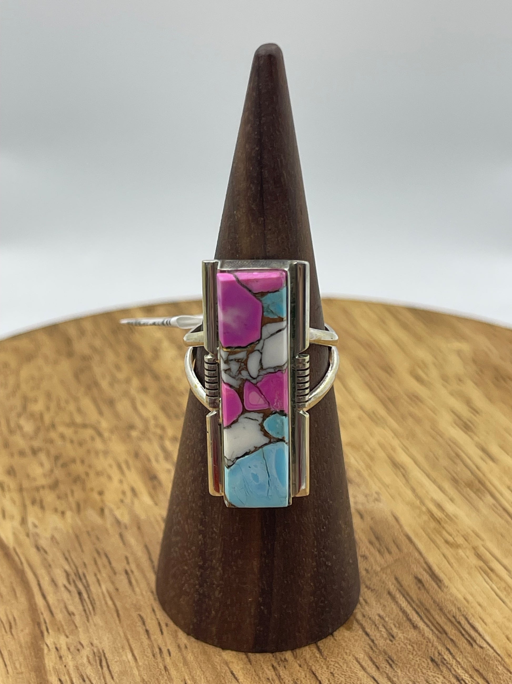 LOT 28 B 1/4 7.0 Cotton Candy Bar Ring by Steve Francisco, Navajo