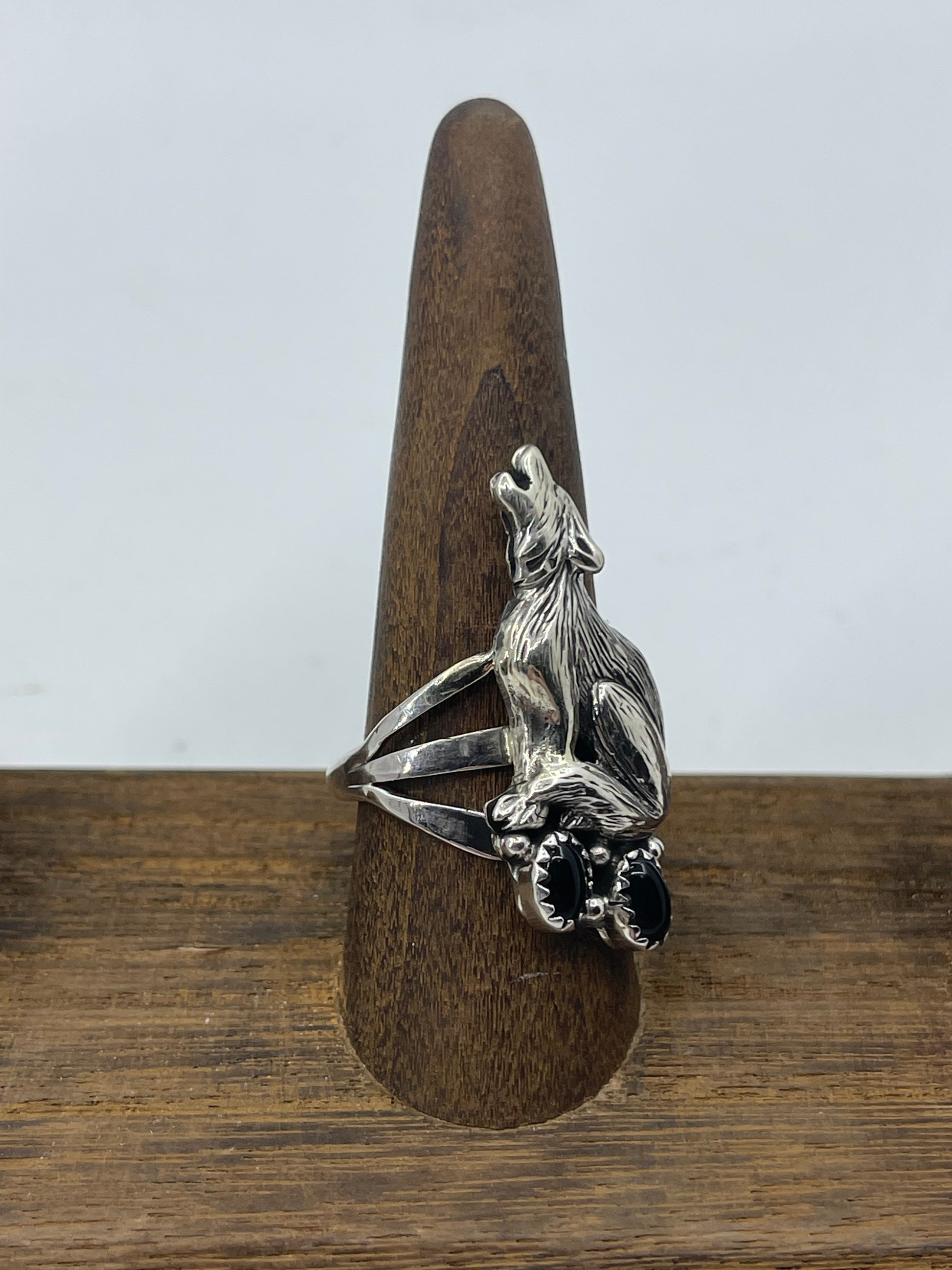 Wolf Howling Ring w/ Black Onyx by Robert Martinez
