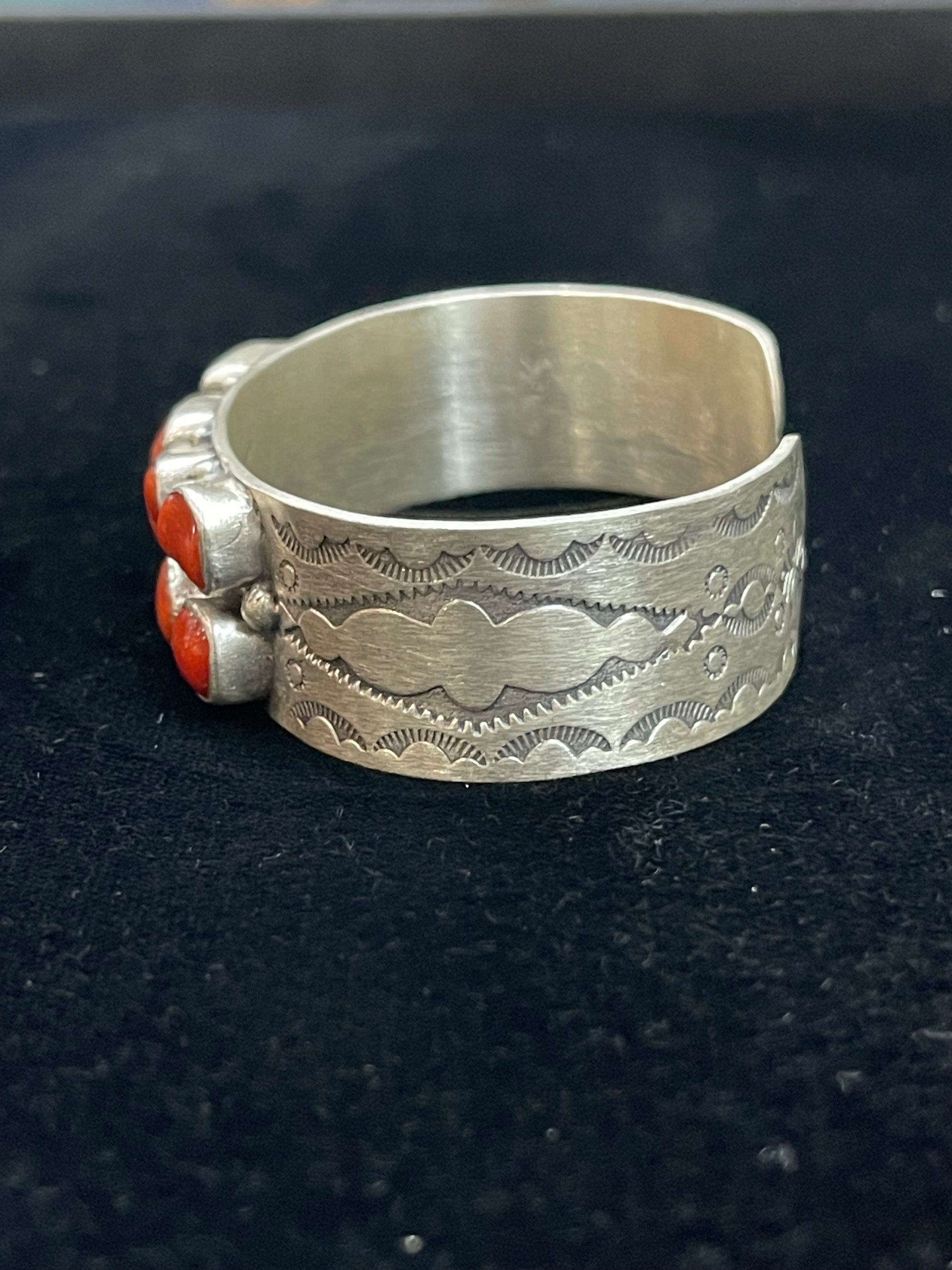 6 3/4" Red Coral 8 Stone Cuff Navajo Made