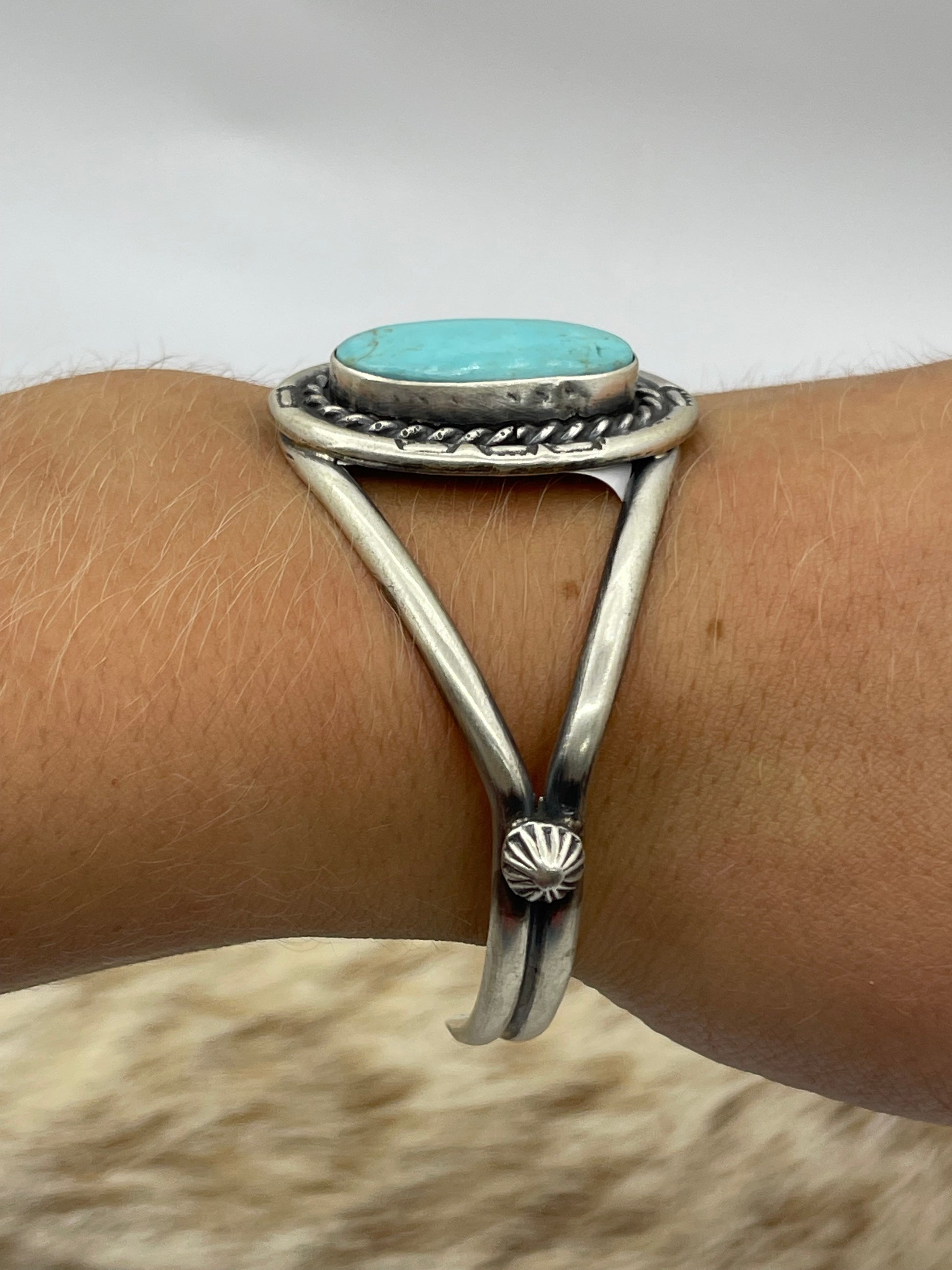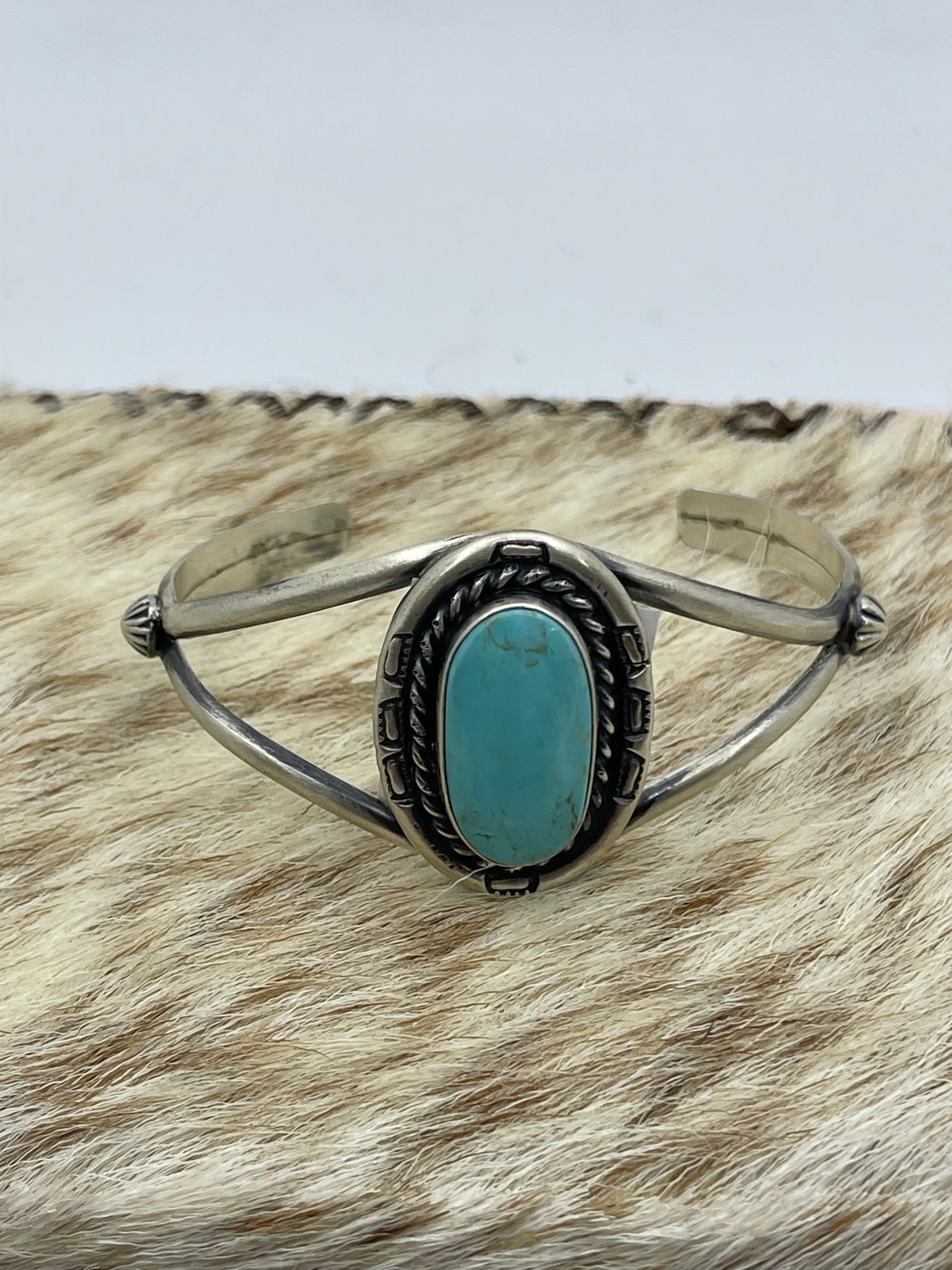 5 3/4"-7 1/4" Kingman Turquoise Cuff by Augustine Largo, Navajo