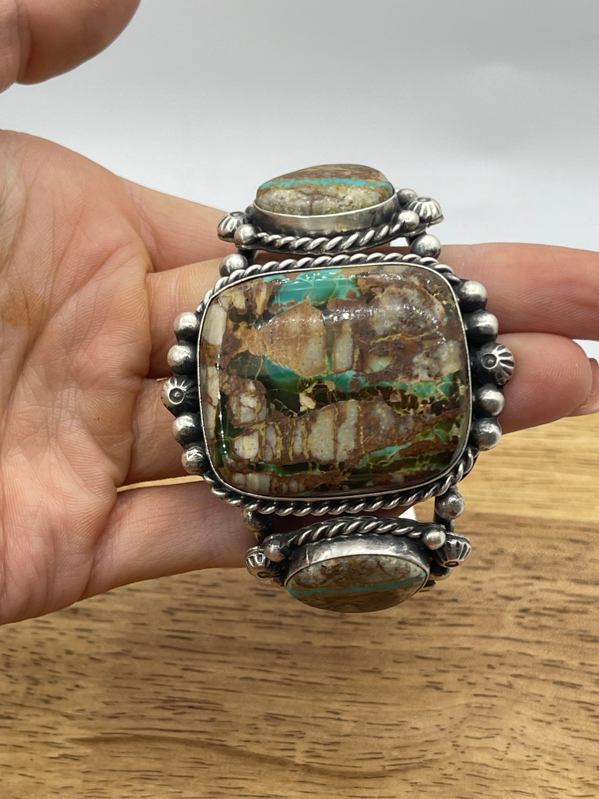 Royston Ribbon Turquoise 3 Stone Cuff by Augustine Largo, Navajo
