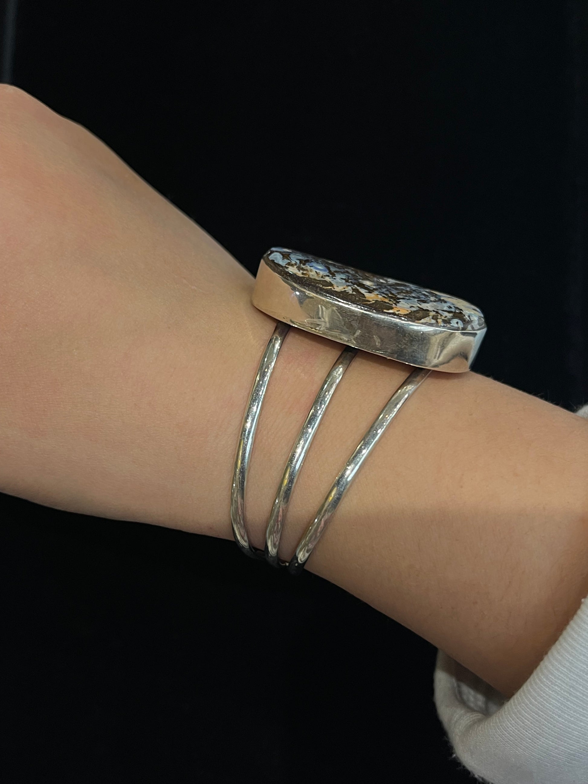 6"- 7 1/4" Natural Boulder Opal Cuff by V. Nez, Navajo