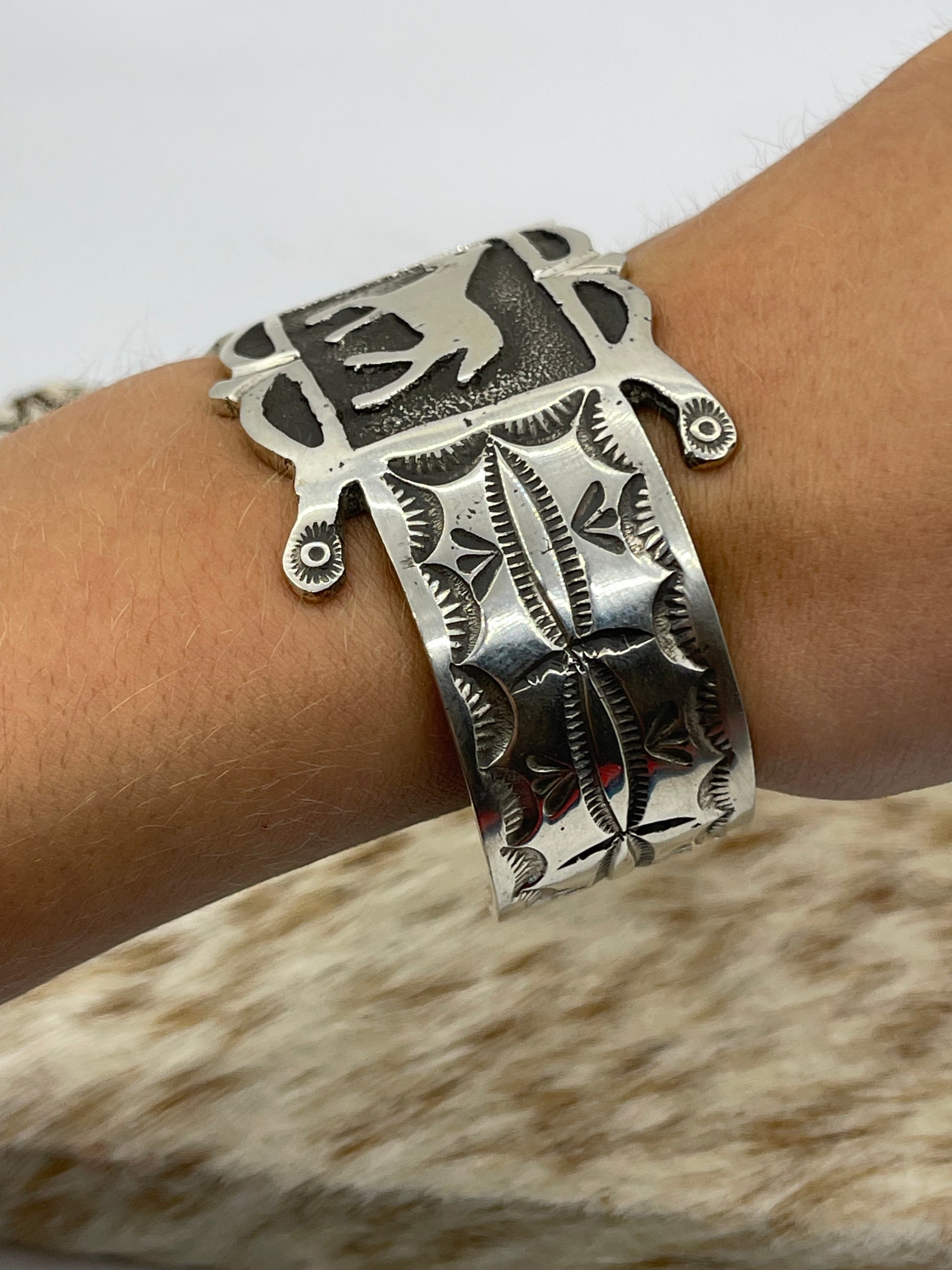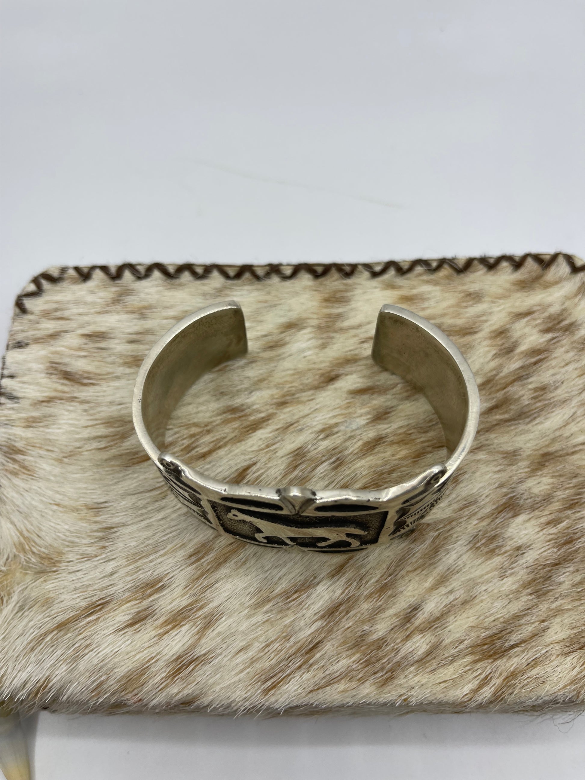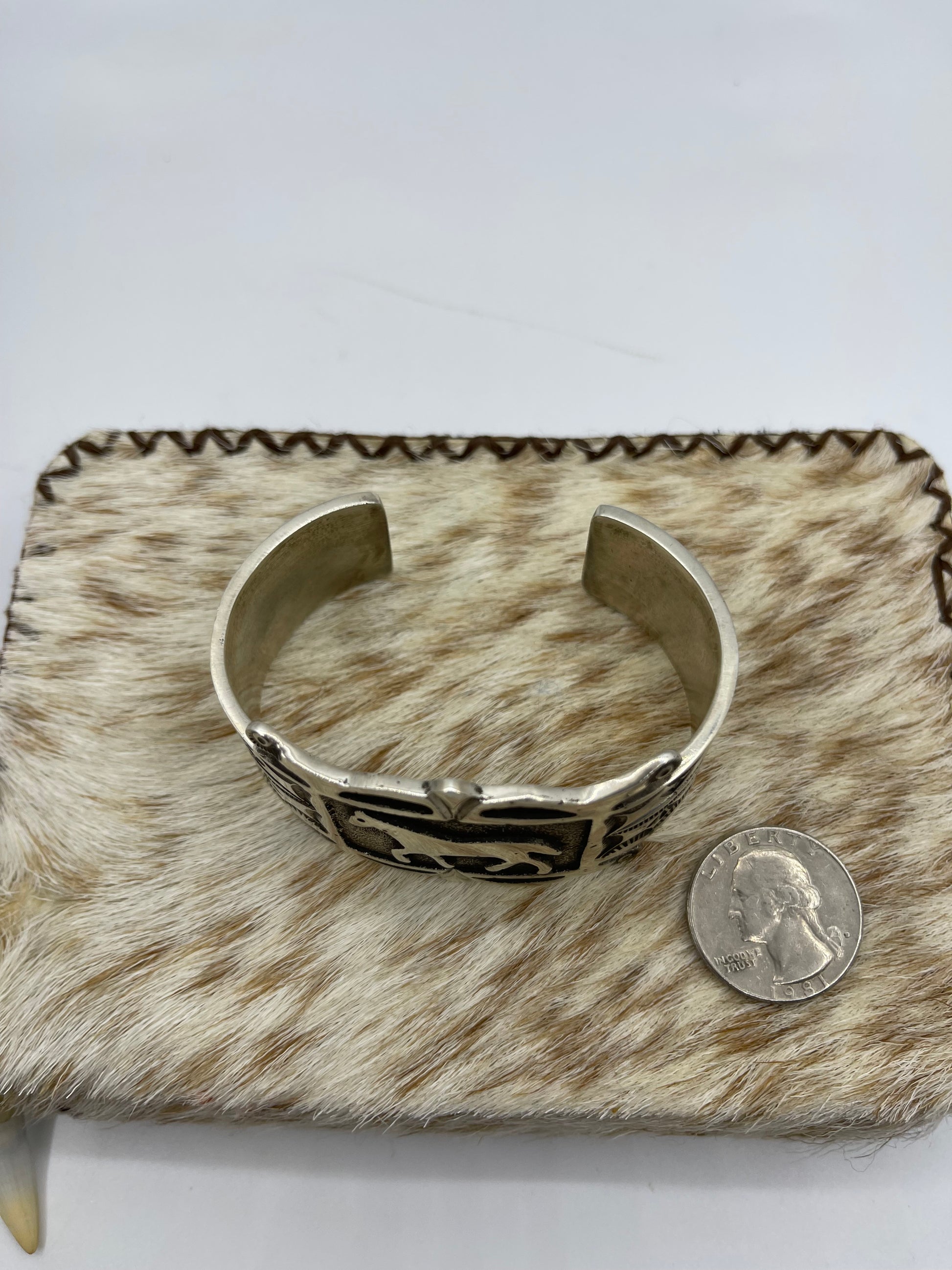 7" Heavy Silver Overlay Horse Cuff by Emerson Kinsel, Navajo
