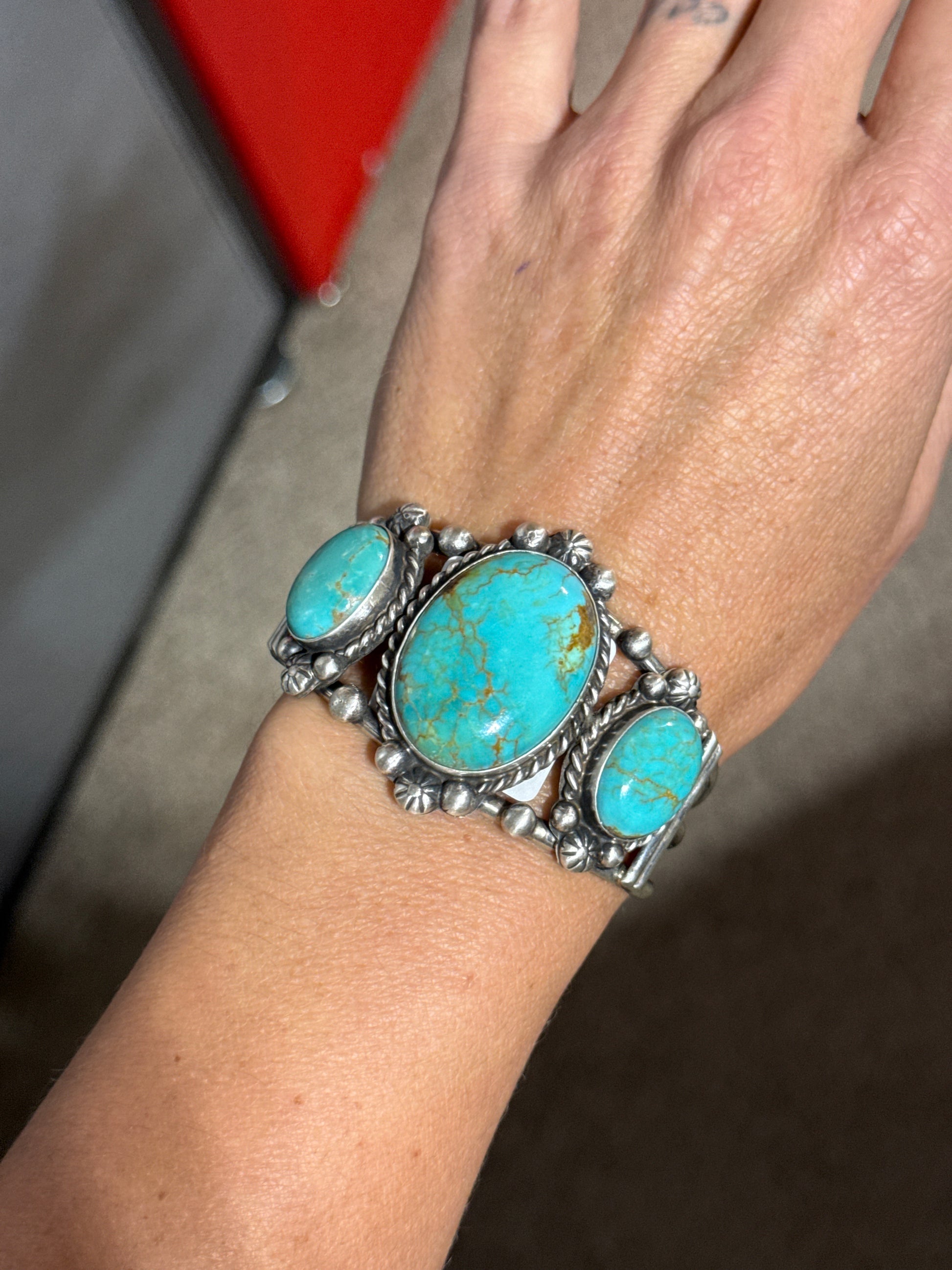 3 Stone Kingman Turquoise Cuff by Augustine Largo, Navajo