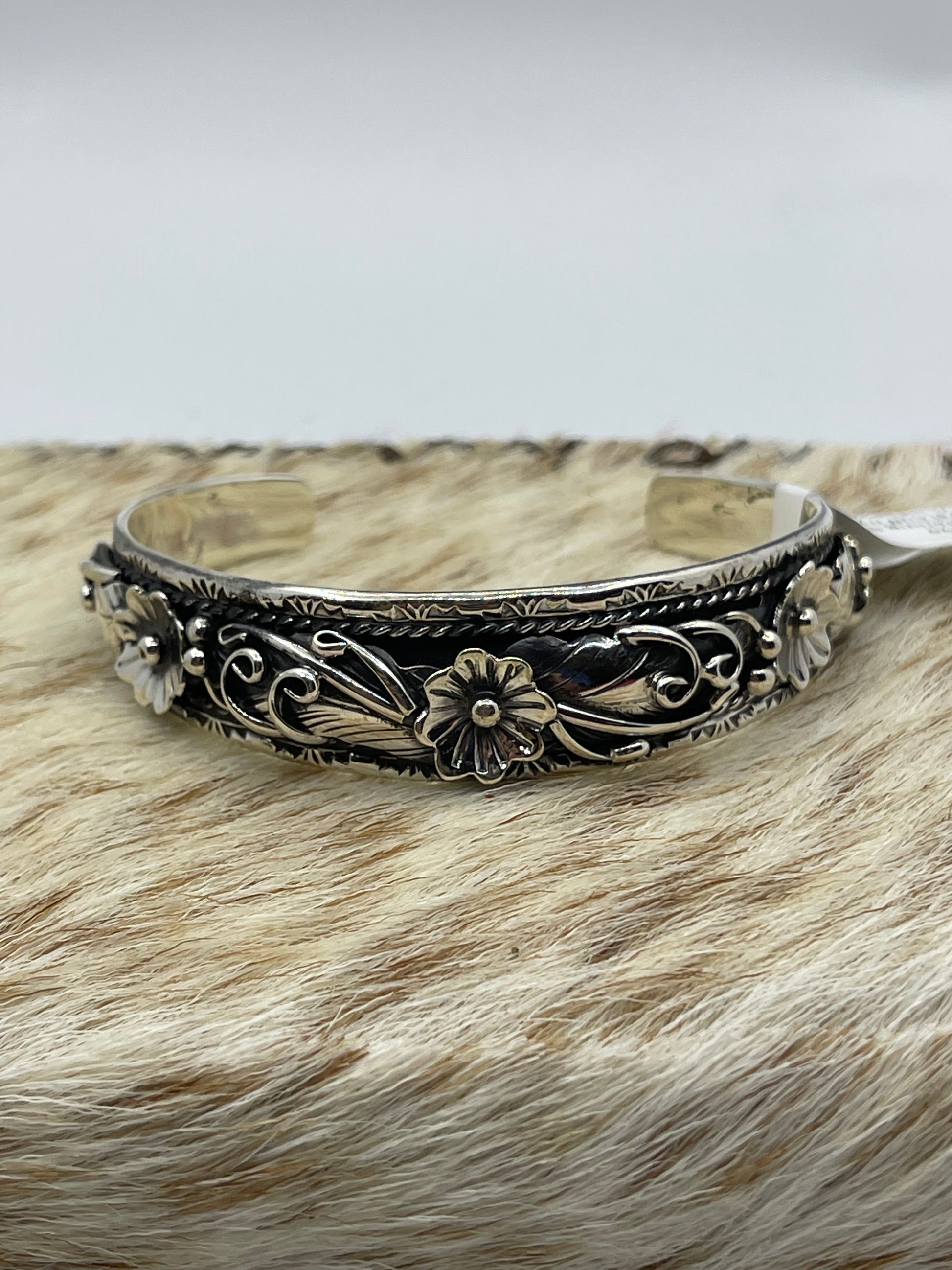 5 3/4"-7" Sterling Silver Floral Cuff by Bessie Joe, Navajo