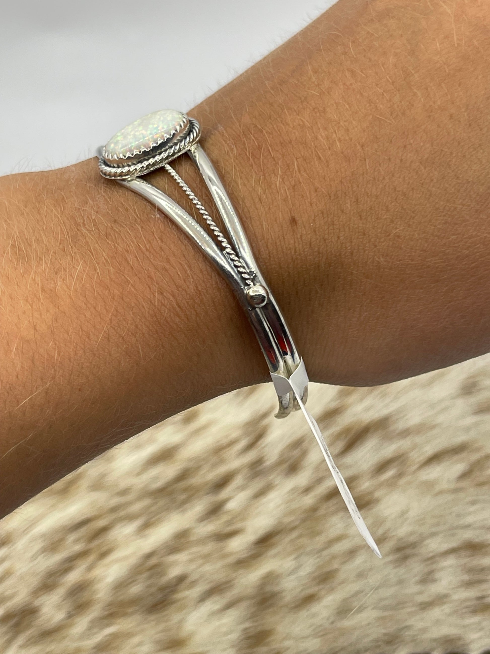 6"-7" White Opal Oval Cuff by Alice Saunders, Navajo