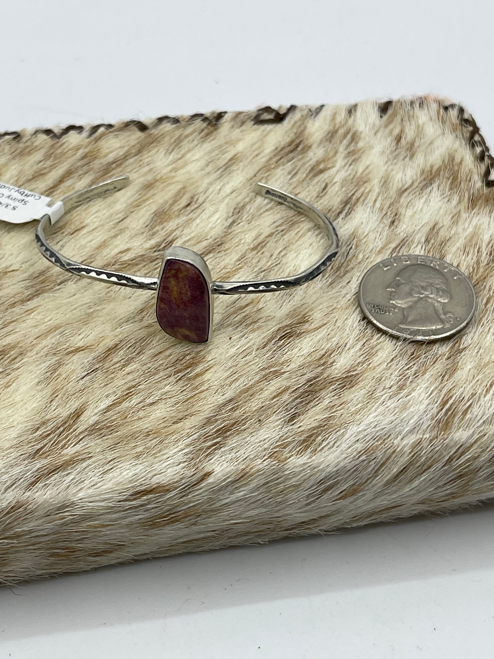 5 3/4"-7" Purple Spiny Oyster Shell Cuff by Judith Dixon, Navajo