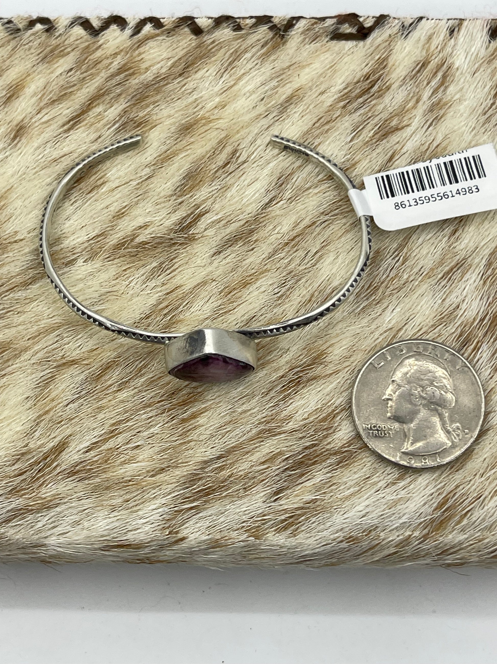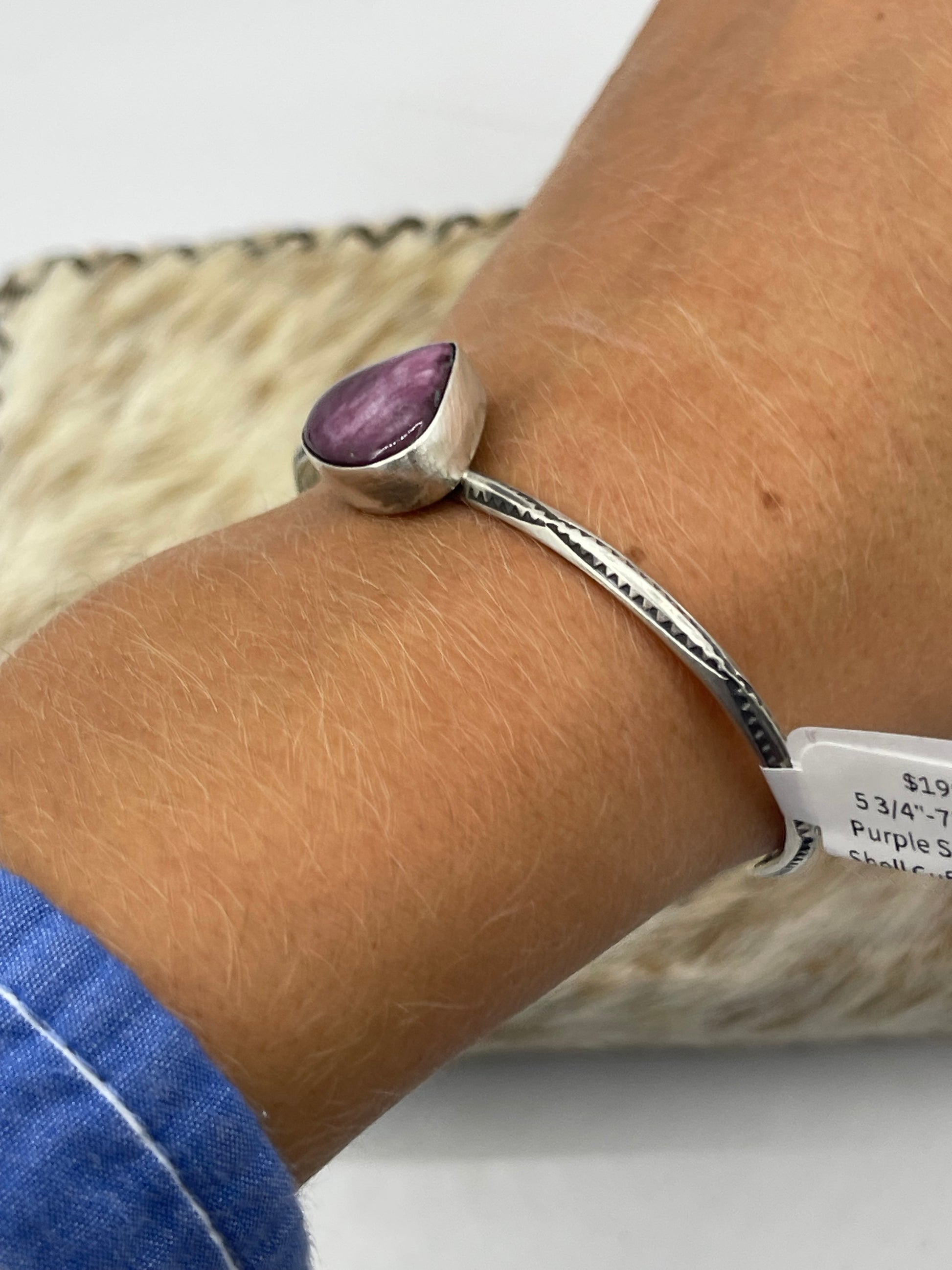 5 3/4"-7" Triangle Purple Spiny Oyster Shell Cuff by Judith Dixon, Navajo
