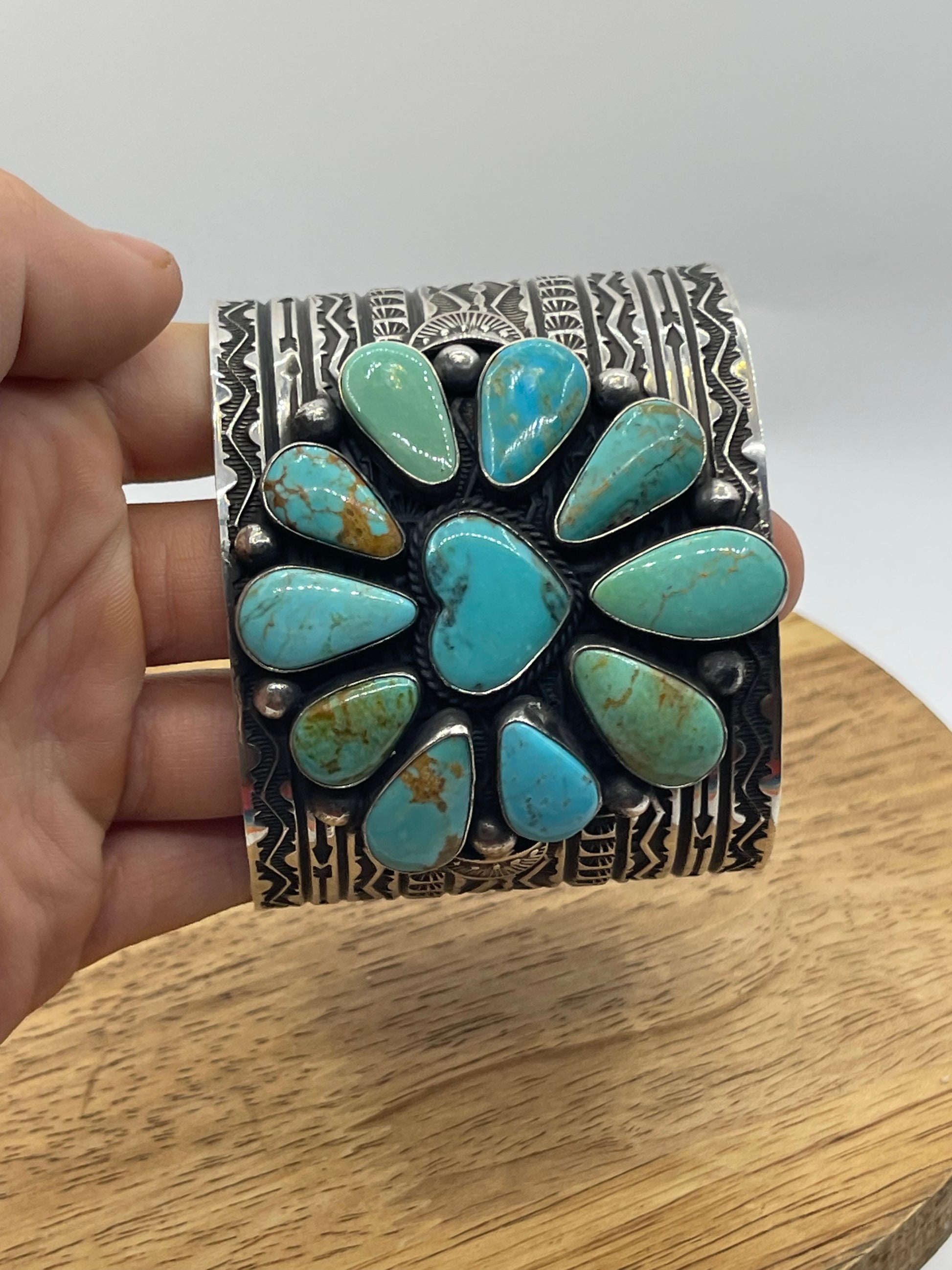 Kingman Turquoise Heart Cluster Cuff by Sunshine Reeves, Navajo