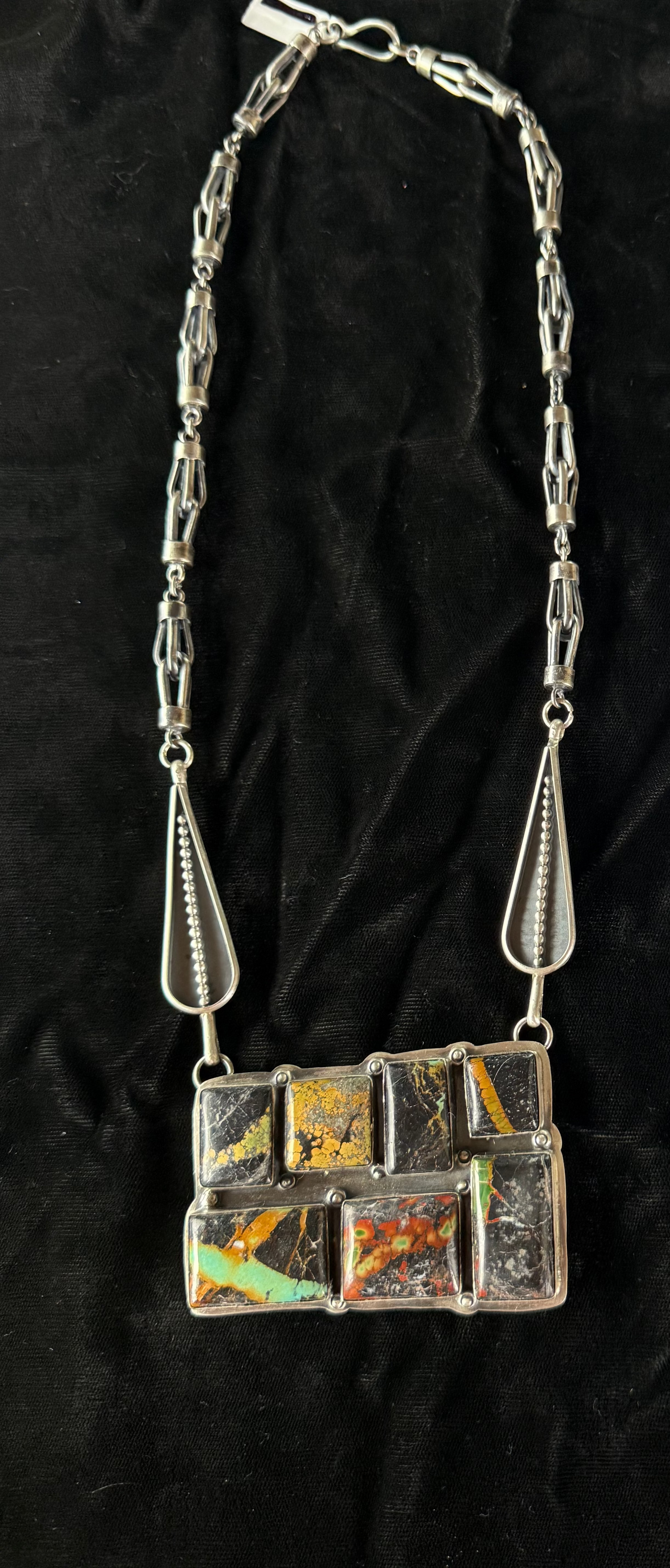 23" Black Jack Turquoise 7 Stone Necklace by Gabby Jurardo, Mexican