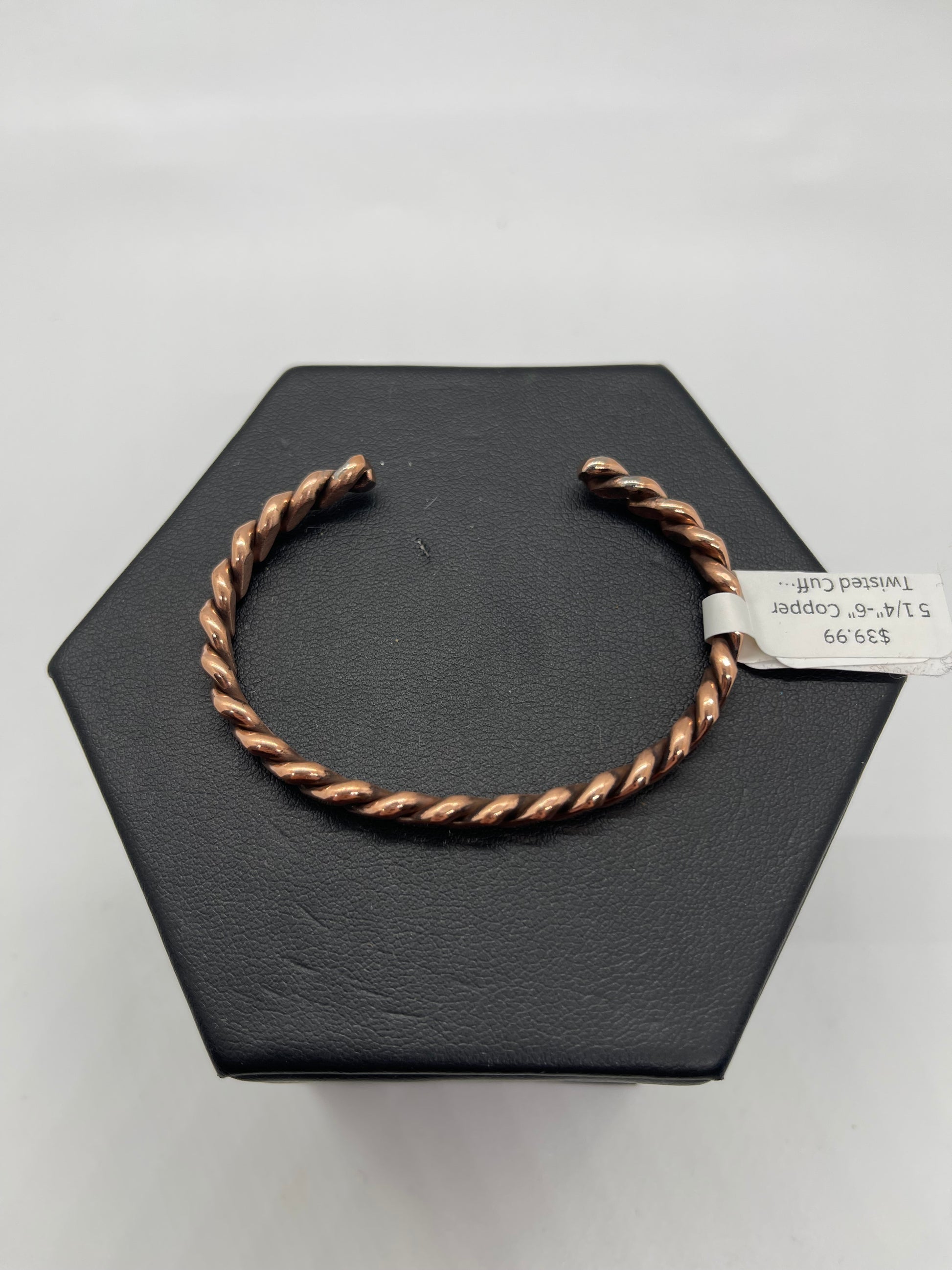5 1/4"-6" Copper Twisted Cuff by Elaine Tahe, Navajo
