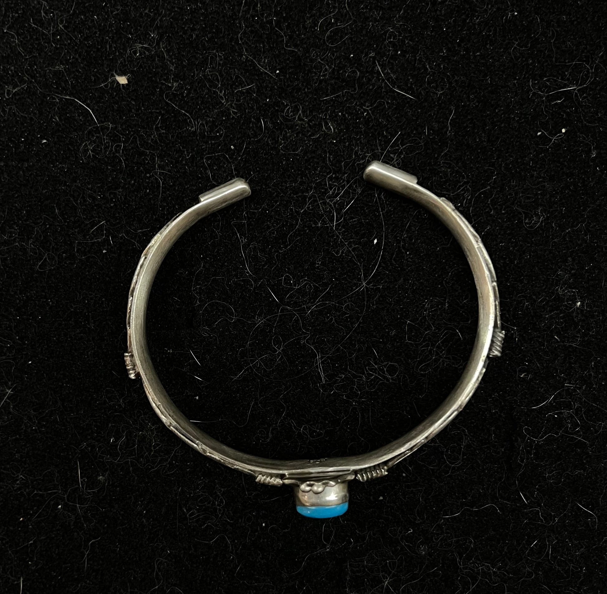 - Handcrafted by Navajo artist Bobby Platero - Features stunning turquoise and feather design - Adjustable size, fits wrists measuring 6"-6 1/2" - Elevate any outfit with this unique and elegant bracelet - Exclusively made for true jewelry enthusiasts Introducing the 6"-6 1/2" Turquoise Feather Cuff Bracelet by Bobby Platero, Navajo. Handcrafted by a Navajo artist, this stunning bracelet features a unique turquoise and feather design. With an adjustable size to fit wrists measuring 6"-6 1/2", this bracelet is the ultimate accessory for any outfit. Exclusively made for true jewelry enthusiasts, elevate your style with this one-of-a-kind piece.