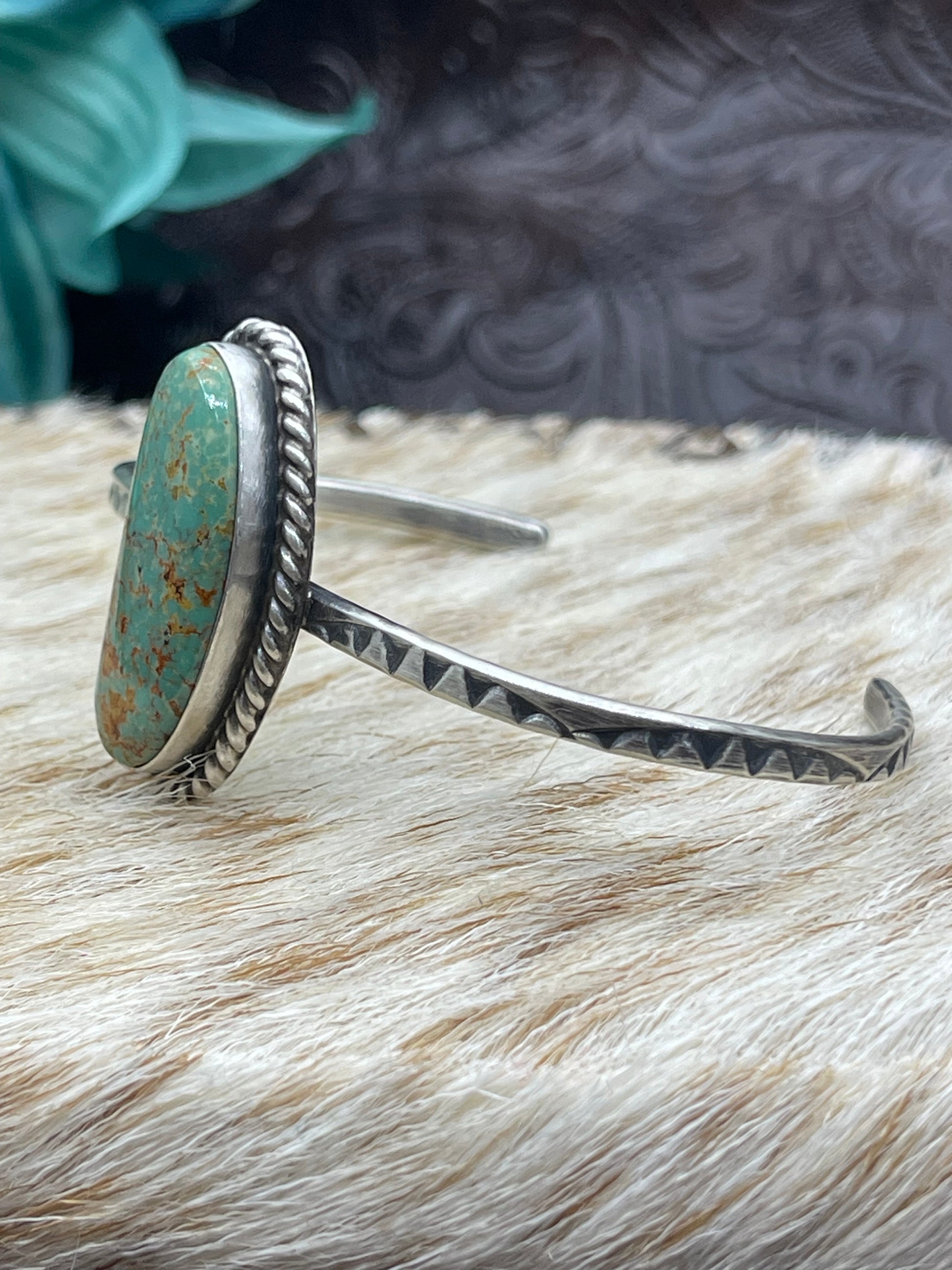 5.5''- 7'' Single Stone Royston Turquoise Cuff By Donovan Skeet Navajo