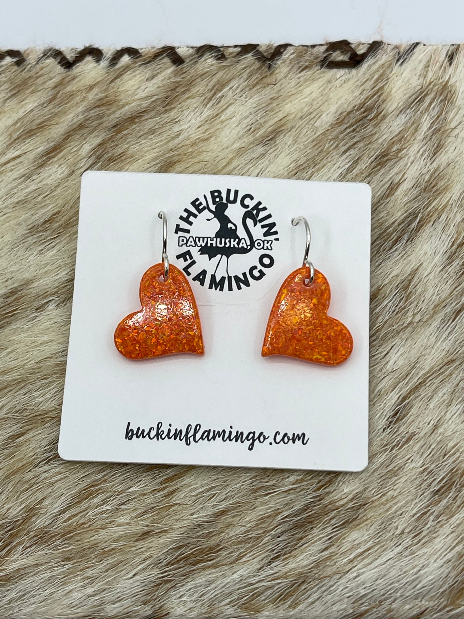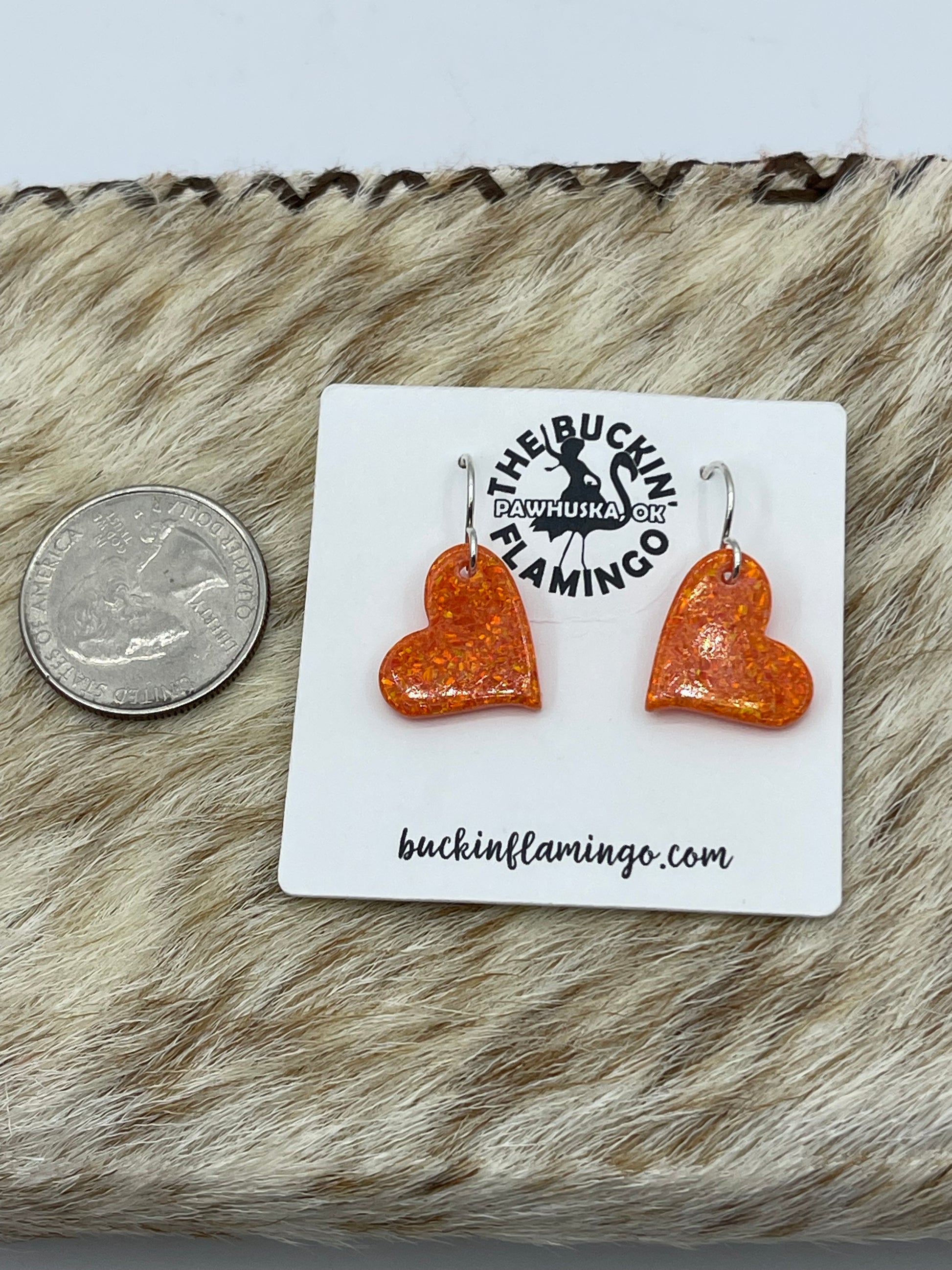 LOT 54 1/25 Orange Opal Heart Dangle Earrings