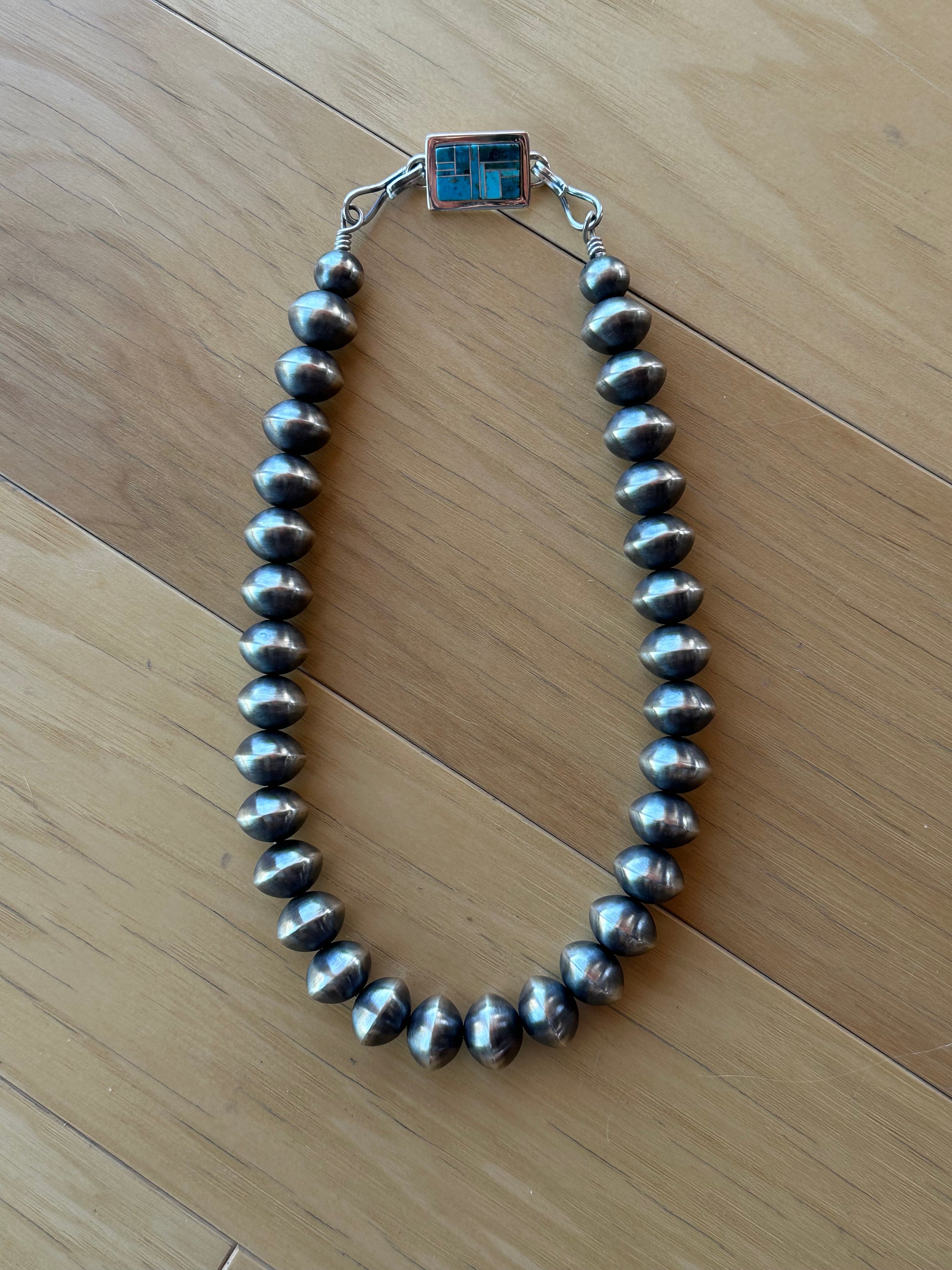 18" 17mm Navajo Pearl Necklace with a Inlayed Turquoise Clasp by Tustin Daye and Marie Jackson, Navajo